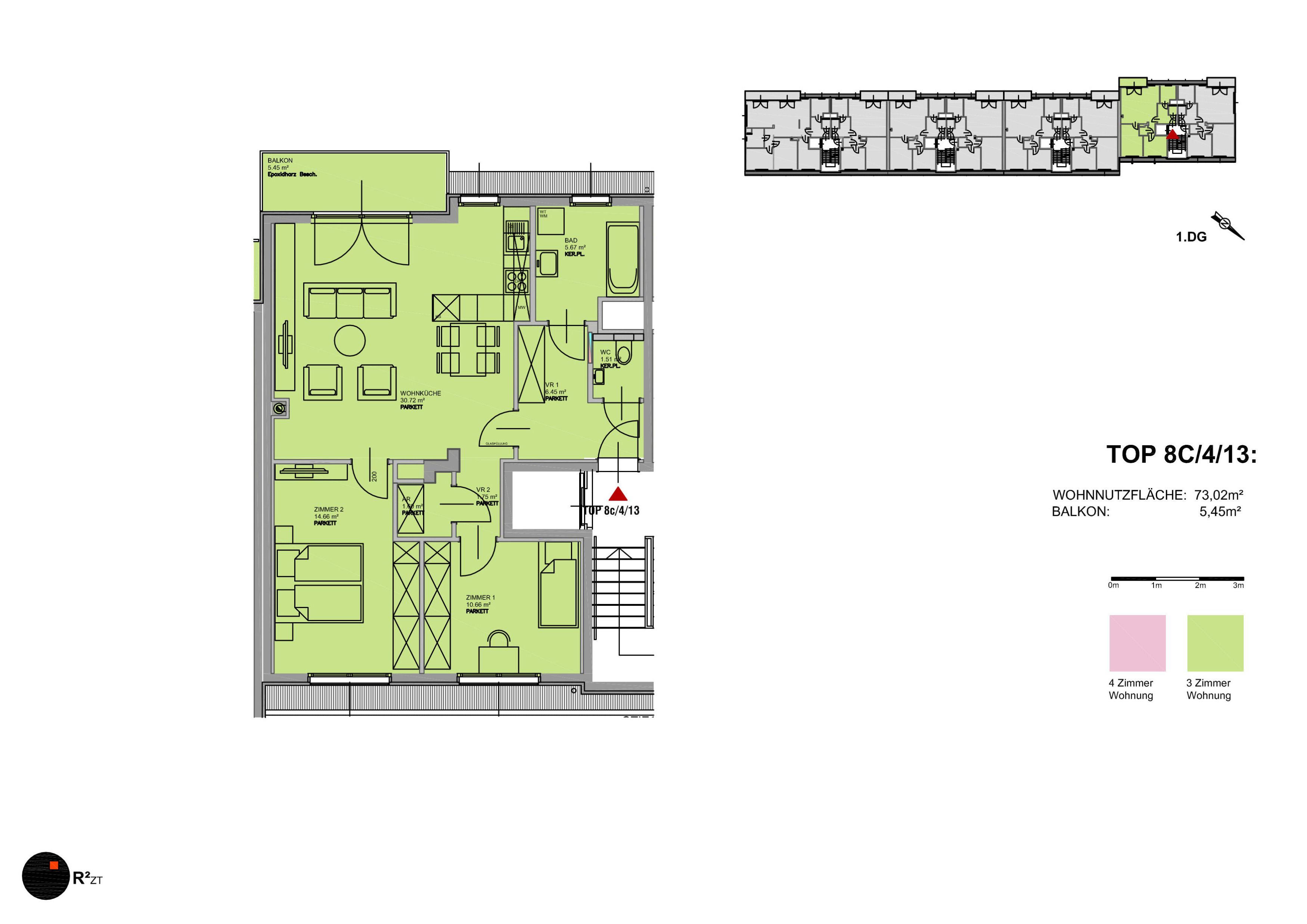 Bei Bedarf kann ein Hofstellplatz (EUR 80,- brutto) oder ein Tiefgaragenplatz (EUR 120,- brutto) angemietet werden.
