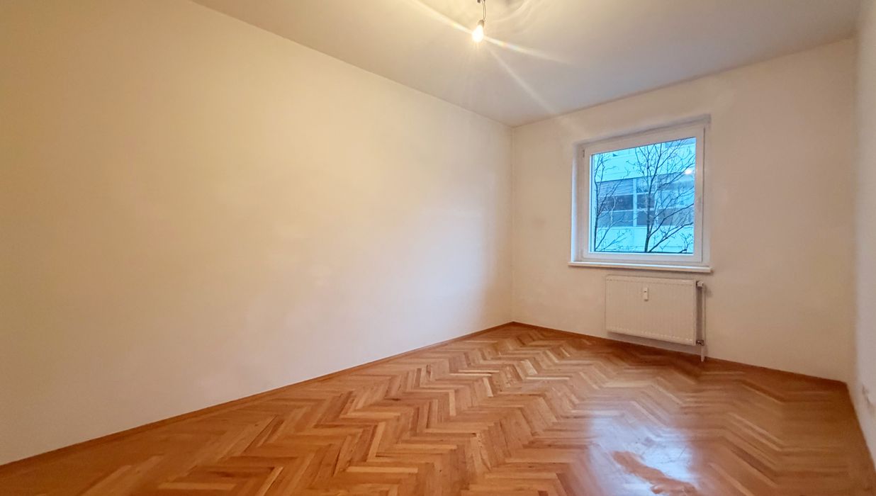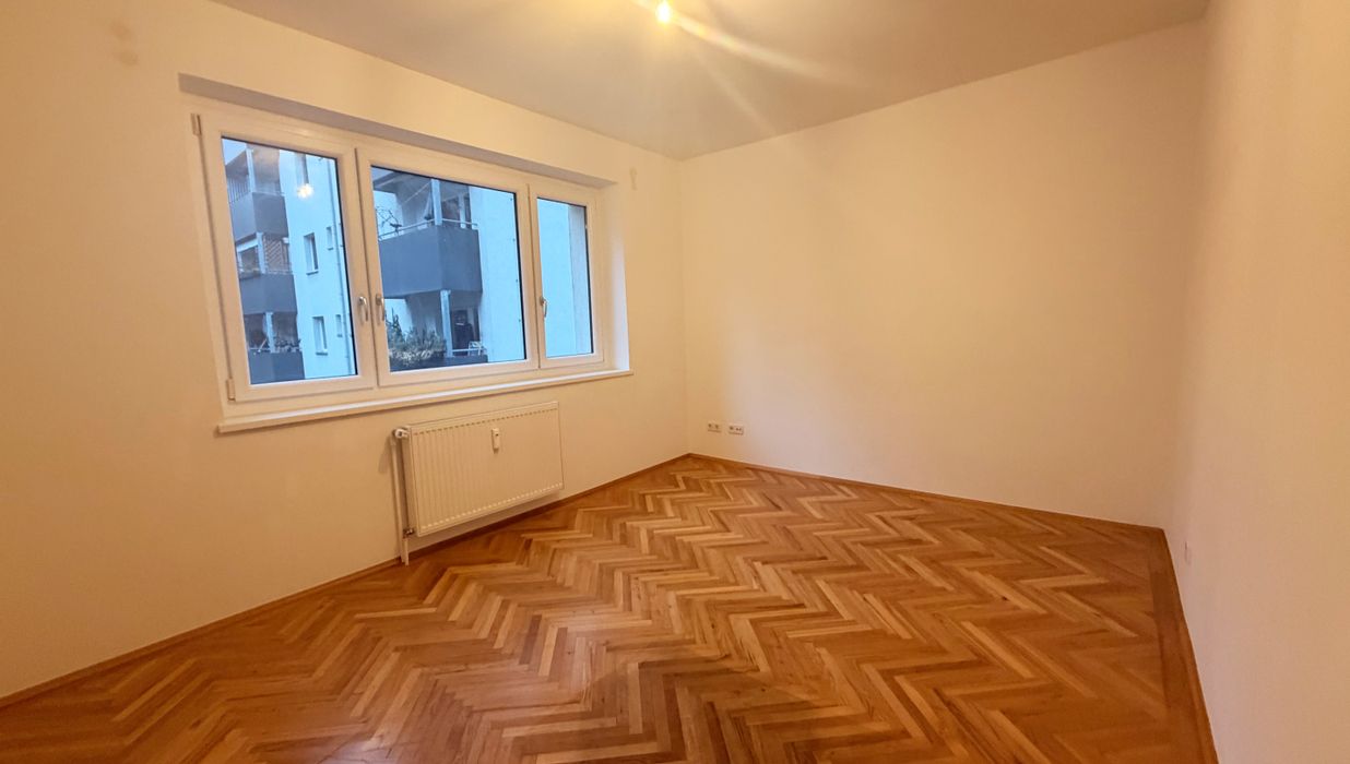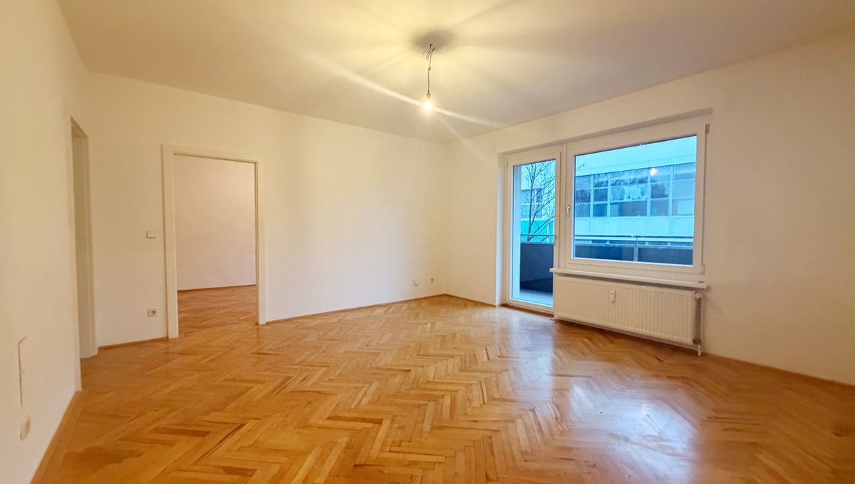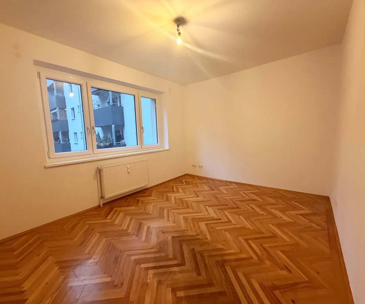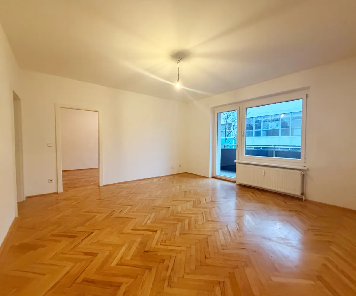 Die Wohnung befindet sich im 1. Obergeschoß und verfügt über eine großzügiges Wohnzimmer mit Kochnische, drei helle, geräumige Schlafzimmer, ein Badezimmer mit Badewanne und Doppelwaschbecken und abgegrenzter Toilette, ein separates Gäste- WC, einen Abstellraum mit Waschmaschinenanschluss und einen Vorraum. Das Highlight ist der südwestlich ausgerichtete Balkon mit Loggia.