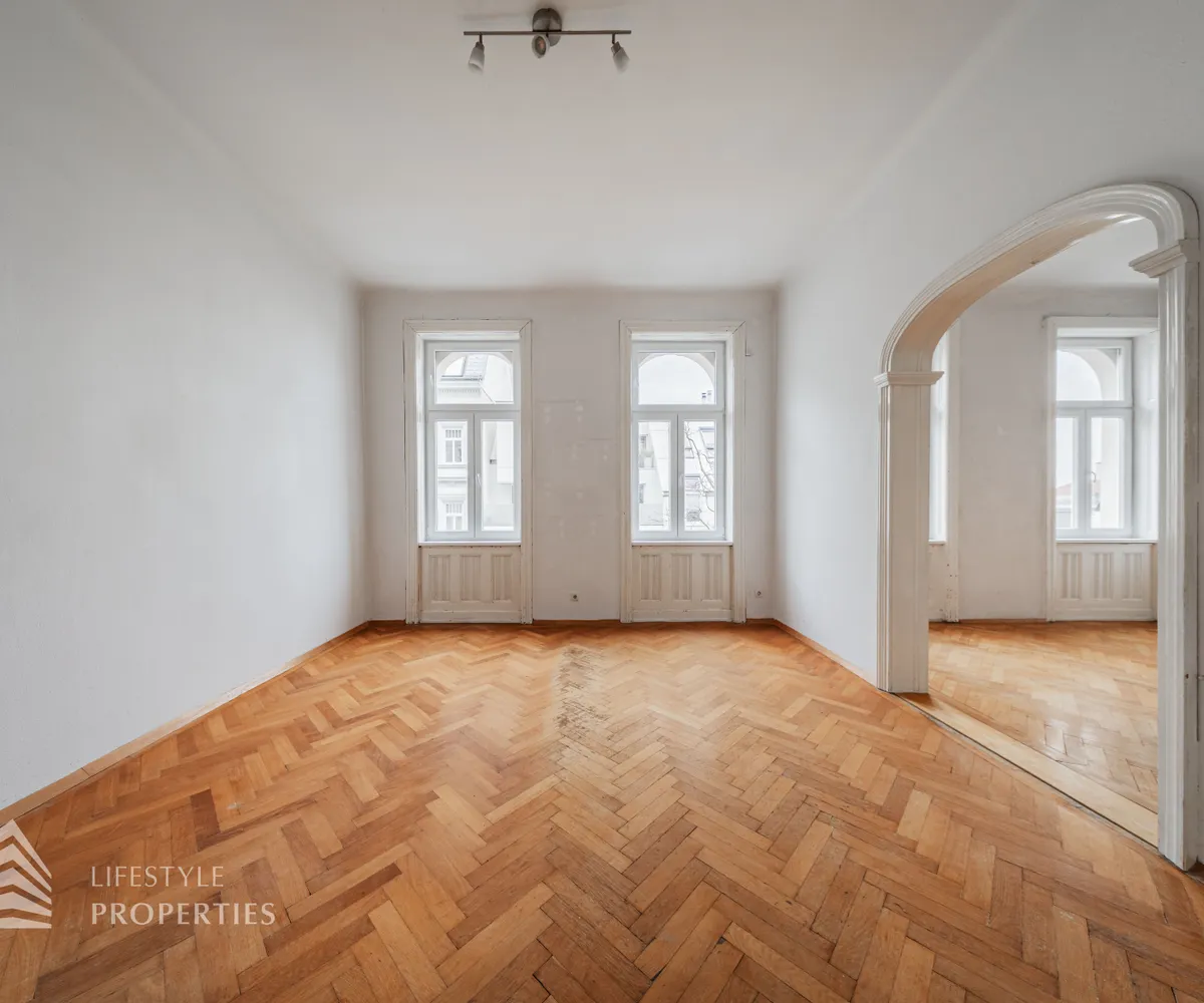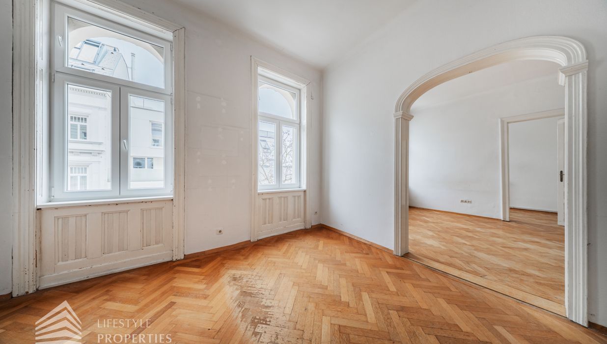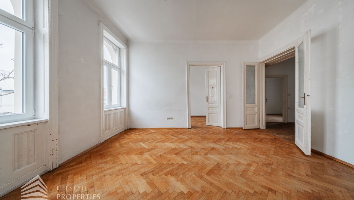 Die gut erhaltene Altbauwohnung, welche im ersten Stock ohne Aufzug liegt und durch ihre klassische Raumaufteilung und den typischen Charme eines Wiener Altbaus überzeugt, verfügt über eine Wohnfläche von ca. 89 m². Die Wohnung verfügt über drei Zimmer, die teilweise zentral begehbar sind, sowie über ein zusätzliches Kabinett, das sich ideal als Arbeitszimmer, Ankleide oder Gästezimmer eignet. Eine separat angelegte Küche, ein Abstellraum sowie ein Badezimmer mit Dusche runden das Raumangebot funktional ab. Der Wohnung ist ein Kellerabteil zugeordnet, das zusätzlichen Stauraum bietet. Die Wohnung eignet sich sowohl als stilvolles Eigenheim als auch als wertbeständige Anlage in einer der gefragtesten Wohnlagen Wiens.