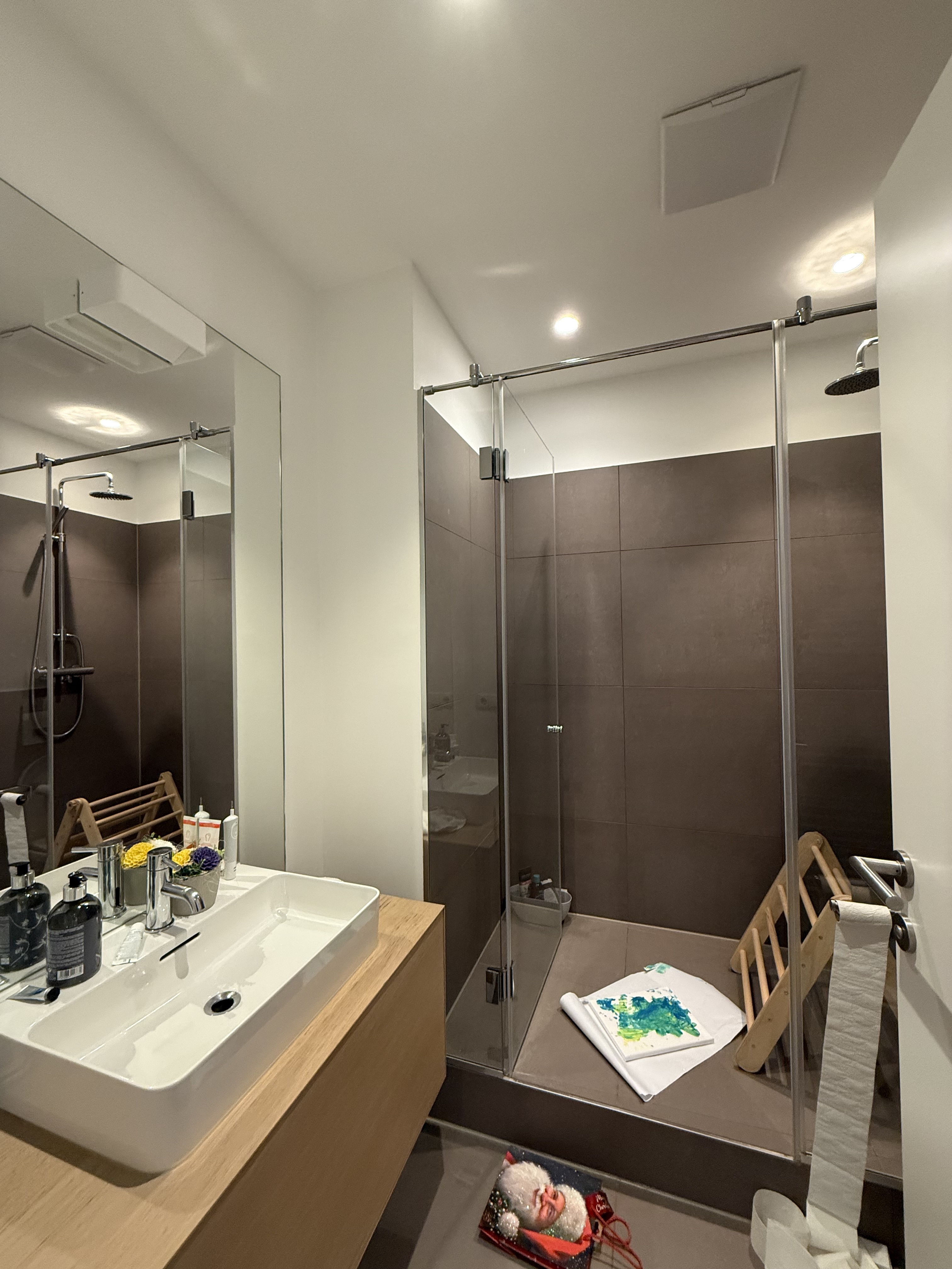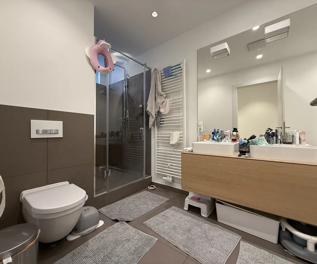 Zwei Badezimmer – eines mit Badewanne und Dusche, eines mit Dusche – sorgen für hohen Wohnkomfort, insbesondere für Familien oder Mehrpersonenhaushalte. Ergänzt wird das Raumangebot durch separate WCs , praktische Abstellräume sowie ausreichend Stauraum.