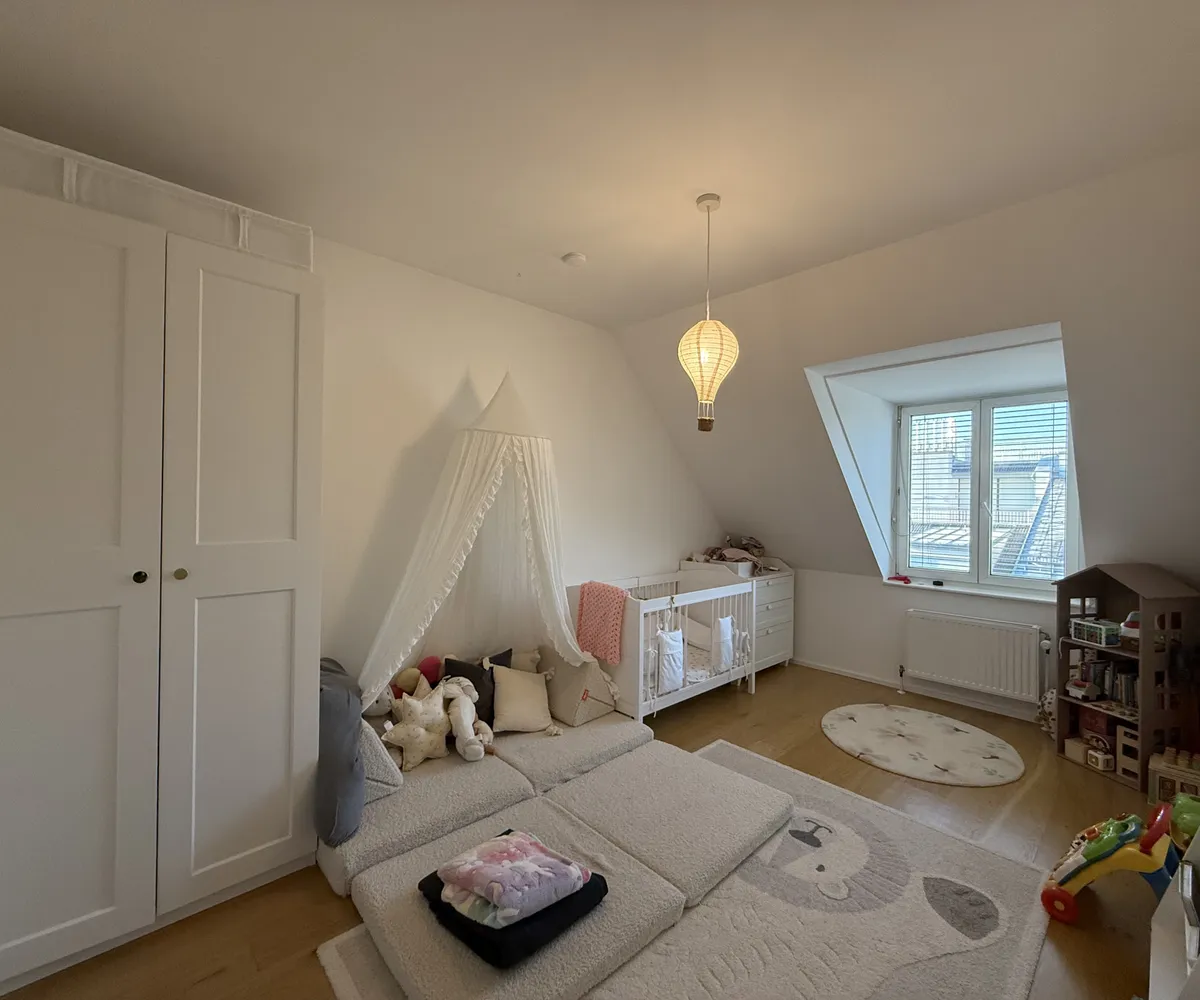 Die rund 167 m² große Einheit liegt im 2. Dachgeschoss und ist bequem mit dem Personenlift erreichbar. Dank der durchdachten Raumaufteilung, der großzügigen Dimensionen und der ruhigen Ausrichtung bietet die Wohnung ein exklusives Wohngefühl mit viel Platz für individuelle Lebenskonzepte.