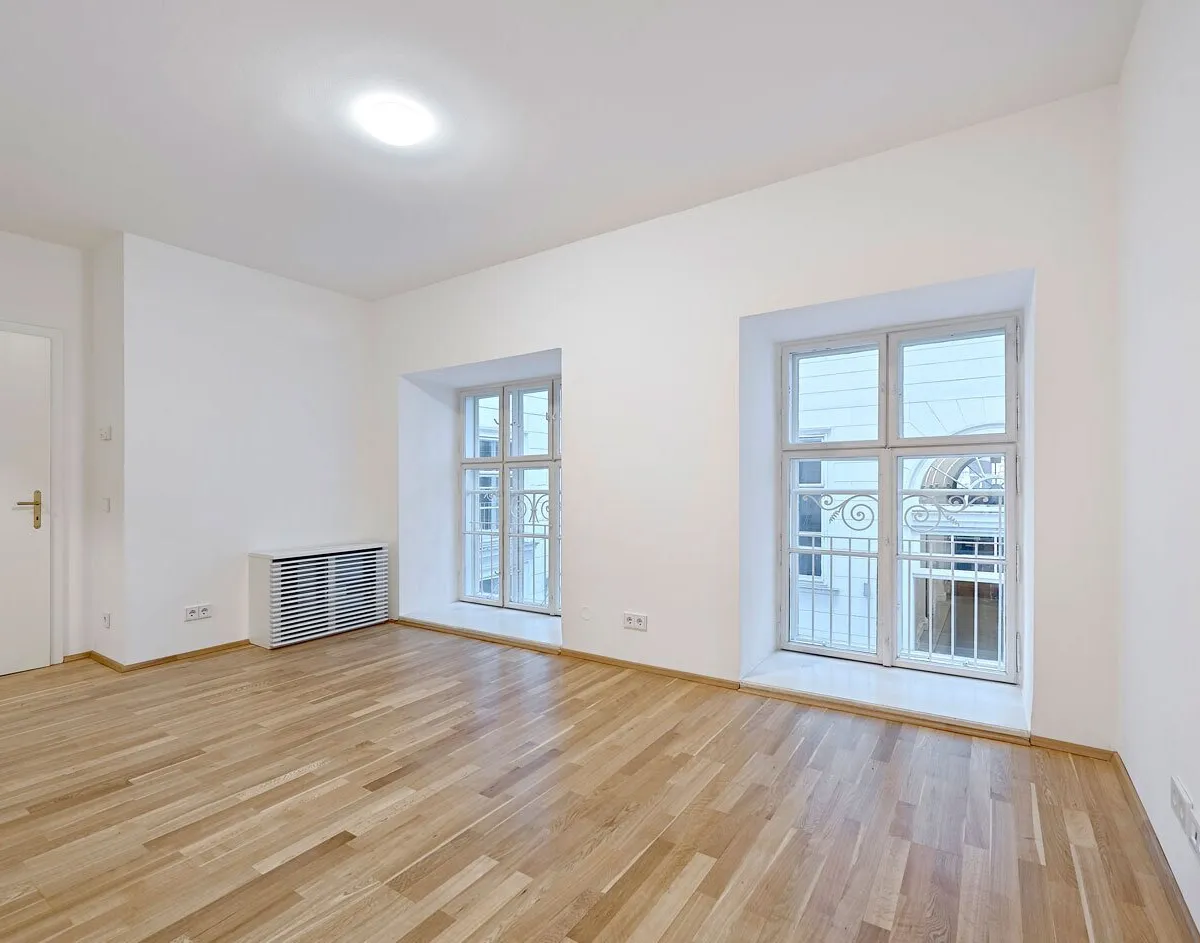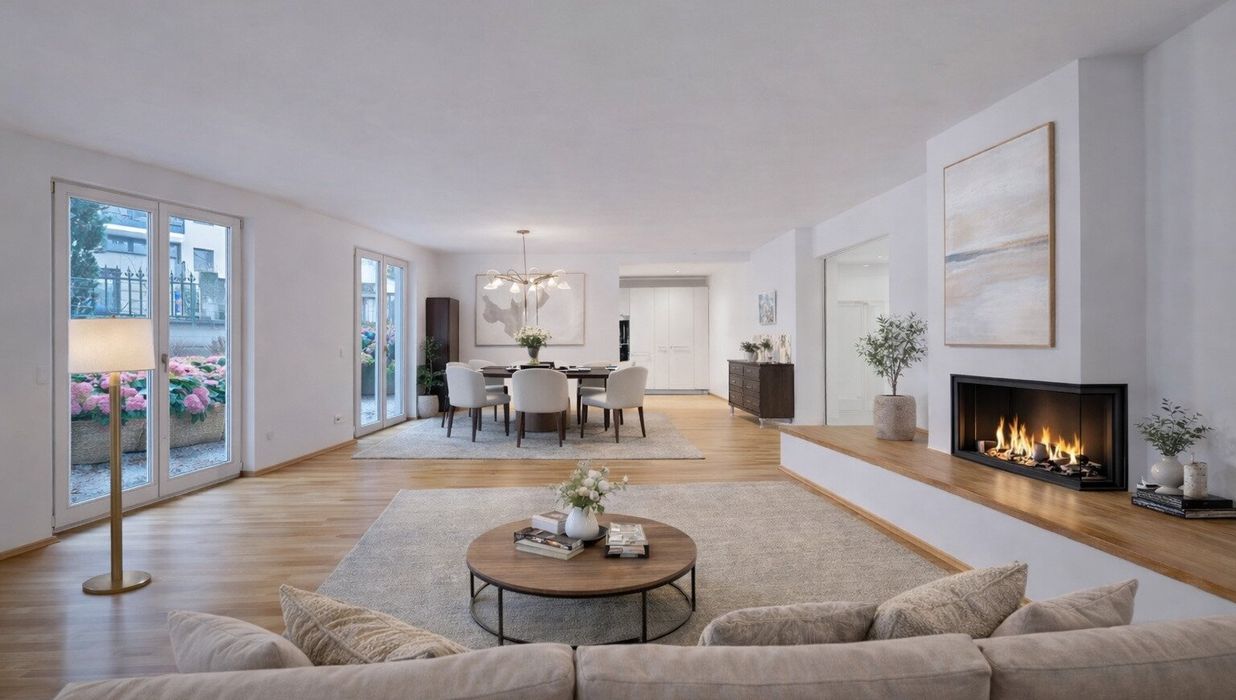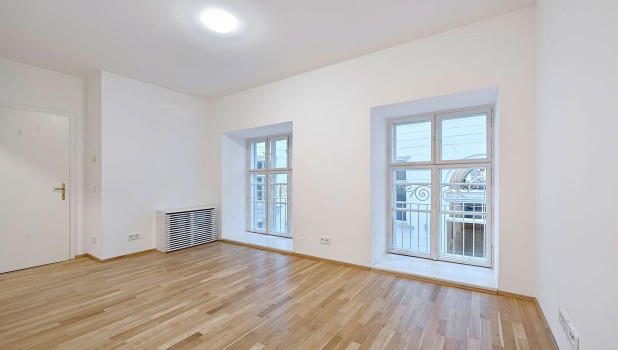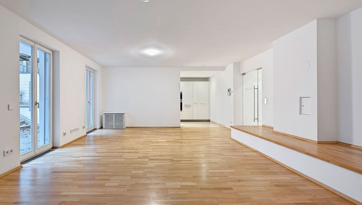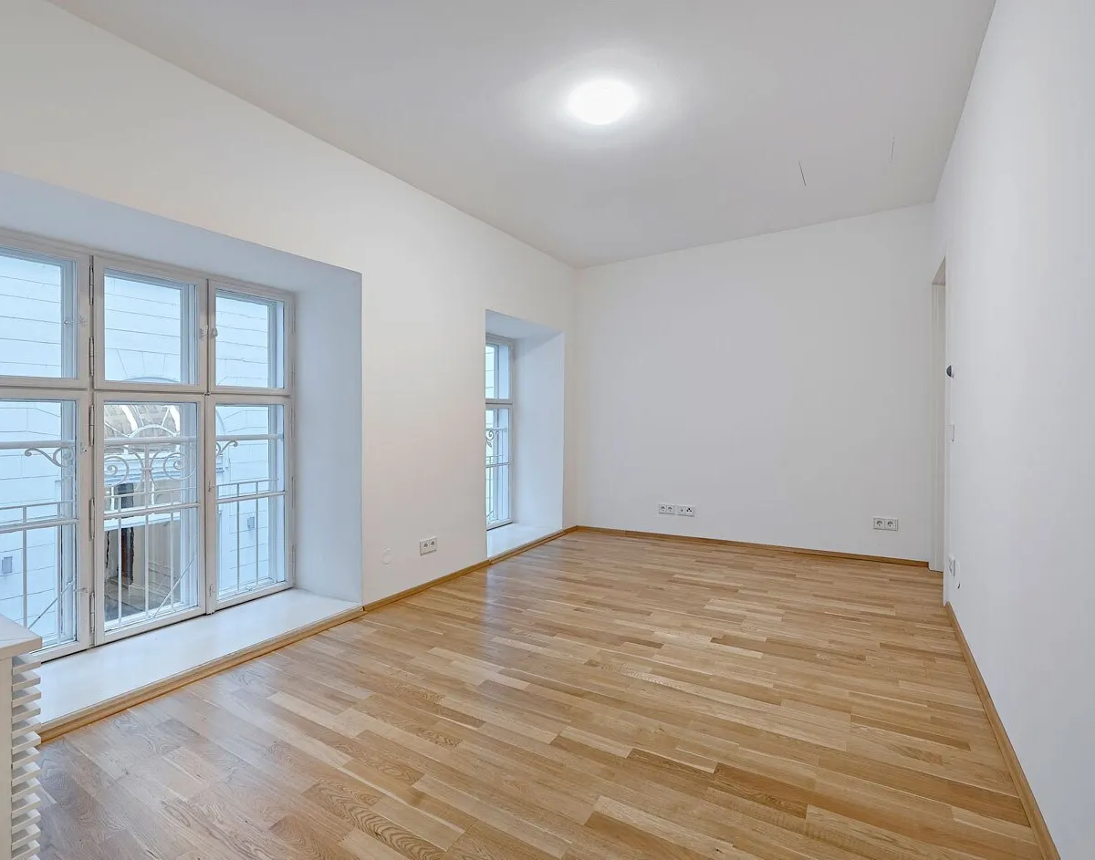 Die Wohnung selbst präsentiert sich mit zeitgemäßem, modernem Wohnkomfort - eingebettet in ein architektonisch eindrucksvolles historisches Gebäude.
