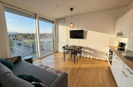 Diese traumhafte 2 Zimmerwohnung befindet sich im 7. Obergeschoss und besticht durch einen intelligenten und durchdachten Grundriss. Sie verfügt über eine großzügige Wohnküche mit eingebauter Küche, ein Schlafzimmer, ein Badezimmer mit Dusche und Waschmaschinenanschluss und einen Vorraum. Die großzügige Freifläche mit herrlichem Ausblick, rundet das Wohnerlebnis perfekt und lädt zum gemütlichen Beisammensein ein.