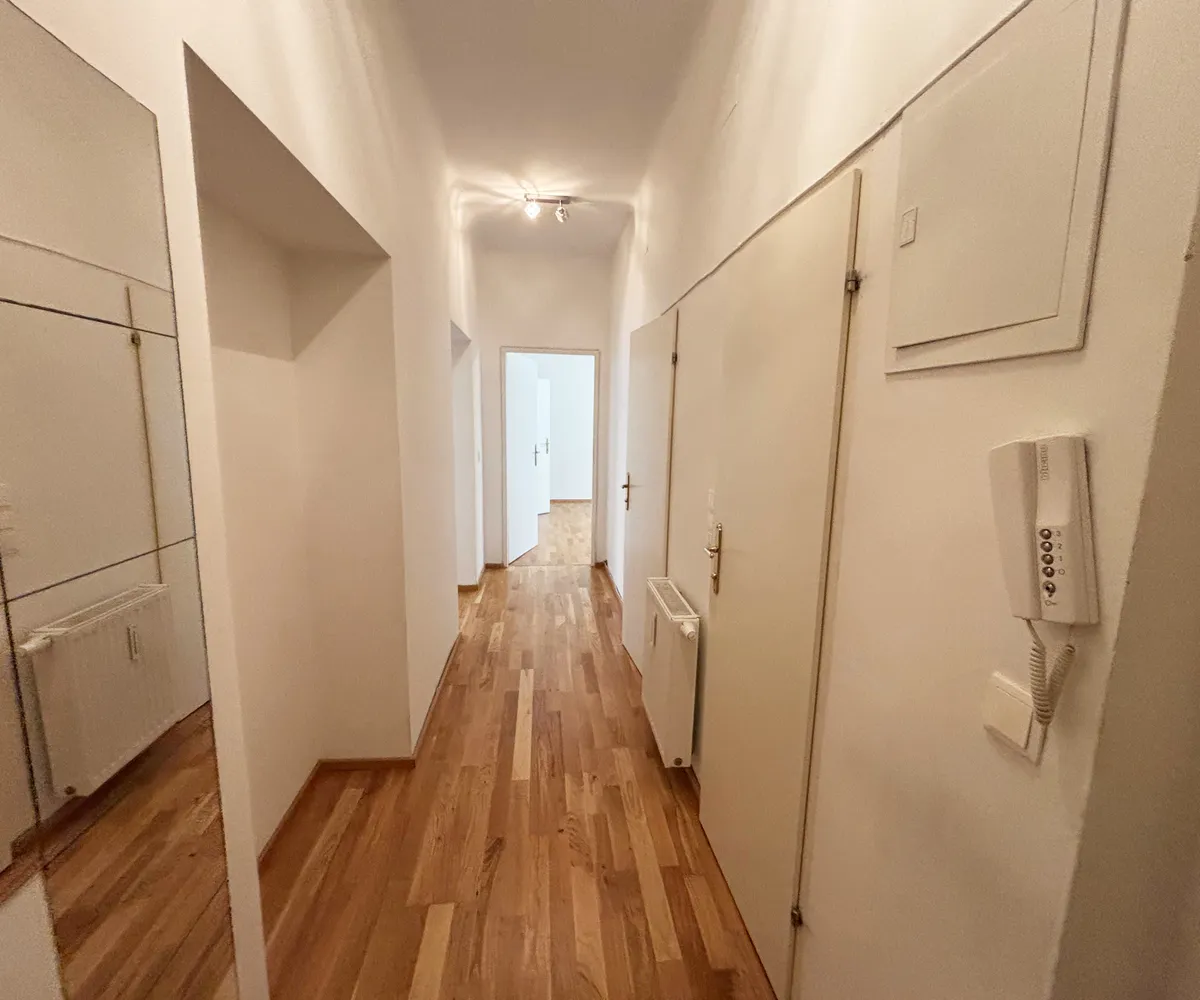 Diese Wohnung befindet sich im 3. Liftstock und unterteilt sich in ein Wohnzimmer, eine Küche, zwei Schlafzimmer, ein Badezimmer, einem separatem WC sowie einen Vorraum.
