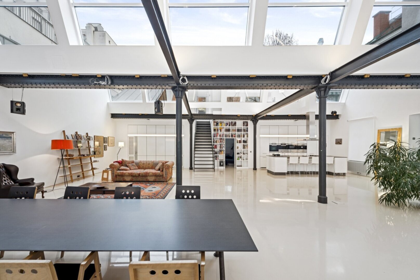 Willkommen in einer Welt, in der Industrial Chic auf zeitlose Wohnkultur trifft: Diese außergewöhnliche Loftwohnung in einer ehemaligen Nähfabrik vereint auf großzügigen 328 m² Wohnfläche das Beste aus zwei Welten – die rohe Ästhetik eines New Yorker Künstlerateliers mit der Funktionalität und Wärme eines modernen Familiendomizils.