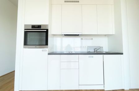Die Wohnung selbst befindet sich im 8. Obergeschoss und verfügt über eine geräumige Wohnküche, ein Schlafzimmer, ein Badezimmer mit Dusche, ein separates WC mit Handwaschbecken sowie eine Abstellnische mit Waschmaschinenanschluss. Die Loggia rundet das Angebot ideal ab!