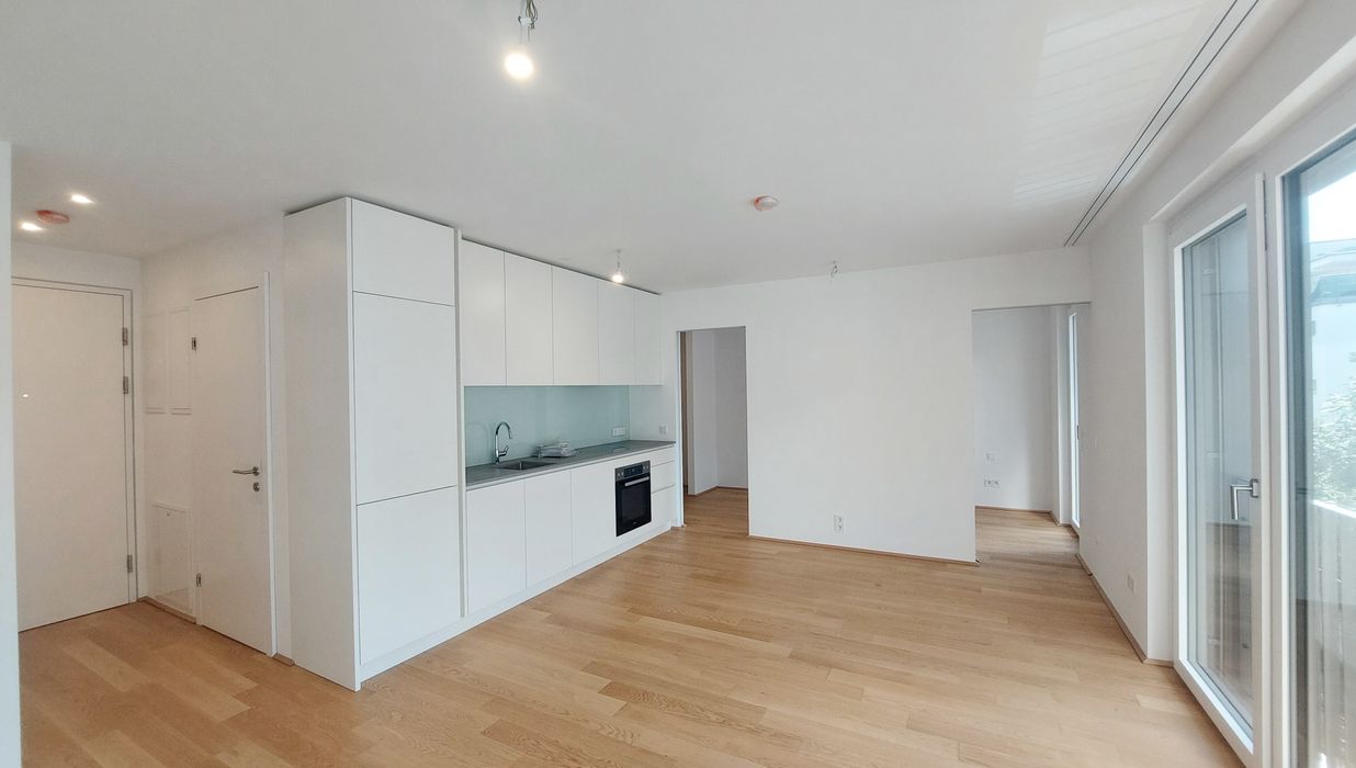 Die Wohnung befindet sich im Erdgeschoss und verfügt über einen Wohnraum mit voll ausgestatteter Küche, ein separat begehbares Schlafzimmer, ein Badezimmer mit Badewanne, ein separates WC, einen Abstellraum mit Waschmaschinenanschluss, sowie einen Vorraum. Die westseitige Loggia lädt zu gemütlichen Stunden im Freien ein.