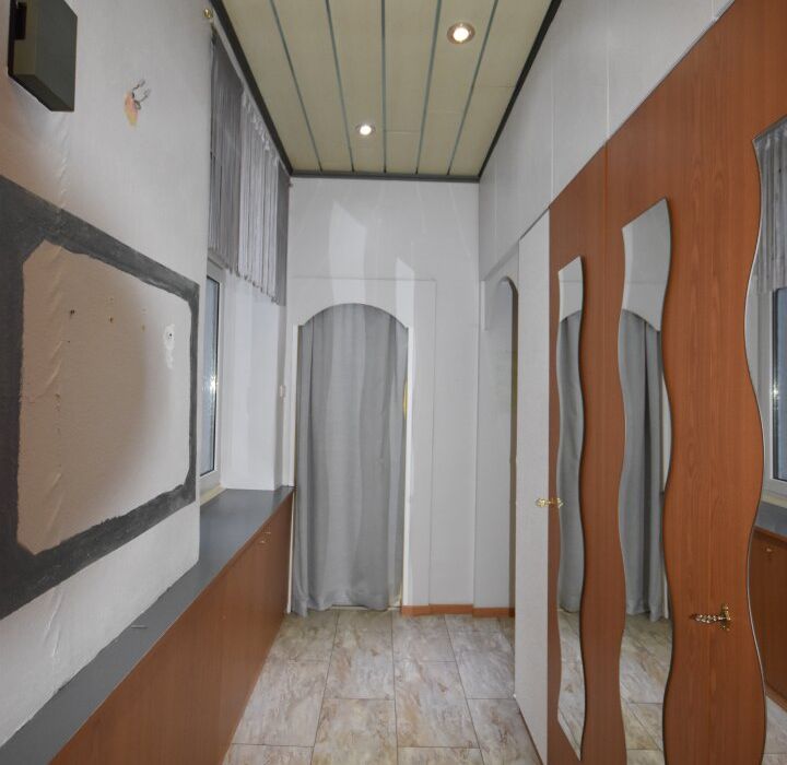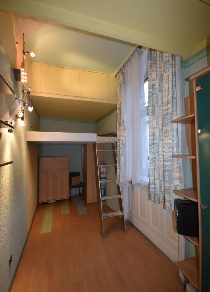 In der Wohnung angekommen steht man in der geräumigen Diele, rechter Hand liegt die große Küche mit Gasherd, links befindet sich das Badezimmer mit Badewanne/Waschtisch/Toilette/WM-Anschluss, danach kommt man in den großen Wohnbereich. Im hinteren Bereich der Wohnung befindet sich dann der Schlafbereich und rechts davon ein Kabinett das als Büro oder Kinderzimmer genutzt werden kann. Einen Schrankraum gibt es auch noch.