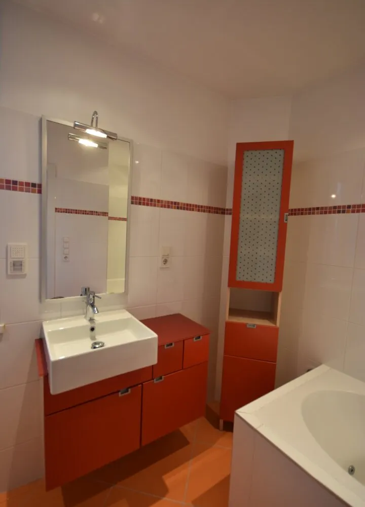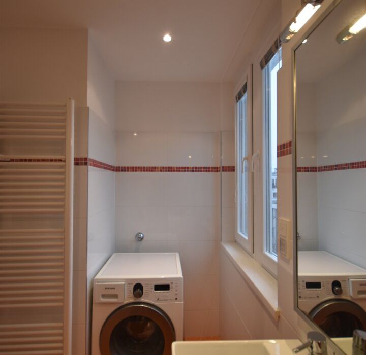 Vom Vorzimmer aus erreicht man zudem auf der rechten Seite das Badezimmer sowie das separate WC. Ergänzend befindet sich neben dem Vorzimmer ein praktischer kleiner Abstellraum.