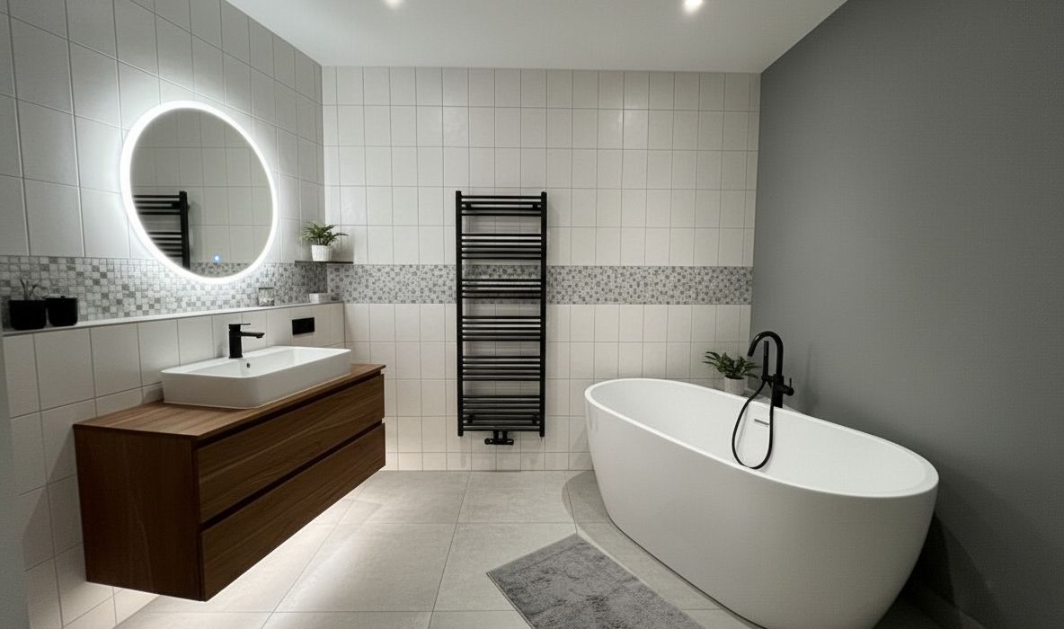 Die Heizungsversorgung erfolgt teilweise über Gasetagenheizungen , überwiegend jedoch über Gaskonvektoren . Der Sanitärstandard entspricht in den meisten Wohnungen nicht dem heutigen Wohnkomfort: Bis auf zwei Einheiten verfügen die Wohnungen derzeit über kein separates Badezimmer ; in diesen Fällen ist lediglich eine Duschmöglichkeit in der Küche vorhanden. Im Zuge einer umfassenden Sanierung lassen sich jedoch moderne Badezimmerlösungen problemlos realisieren.