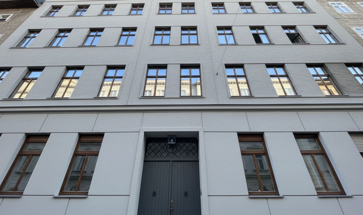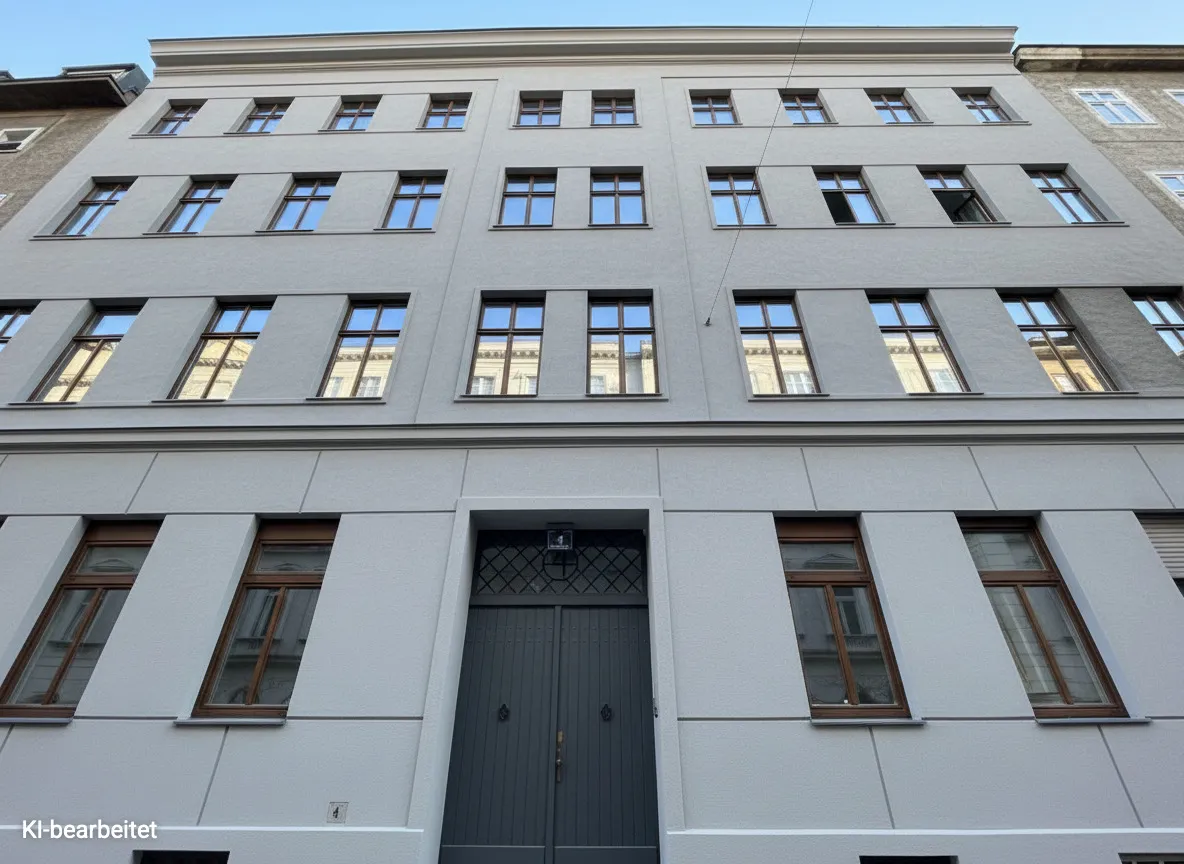 Das Stiegenhaus wird derzeit umfassend generalrevitalisiert und neu ausgemalt . Auch die Fassade des Gebäudes wird aktuell saniert , wodurch sich das gesamte Erscheinungsbild des Hauses deutlich aufwertet. Die dargestellten Visualisierungen der Fassade wurden KI-gestützt erstellt und dienen ausschließlich der Veranschaulichung des geplanten Erscheinungsbildes nach Abschluss der Sanierungsarbeiten . Abweichungen zur tatsächlichen Ausführung sind möglich.