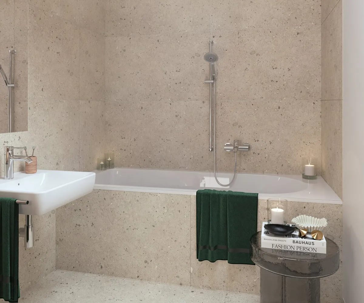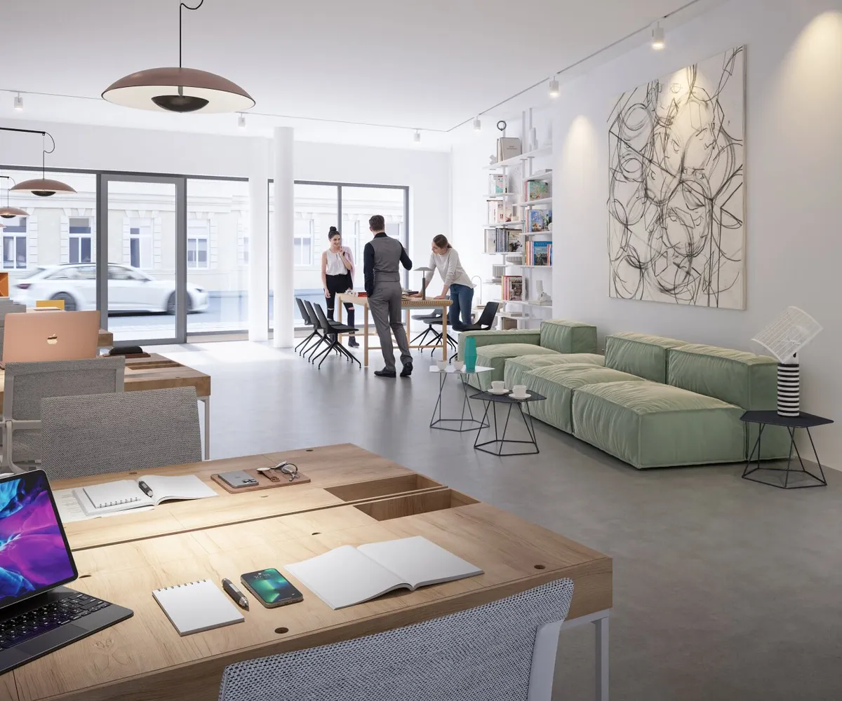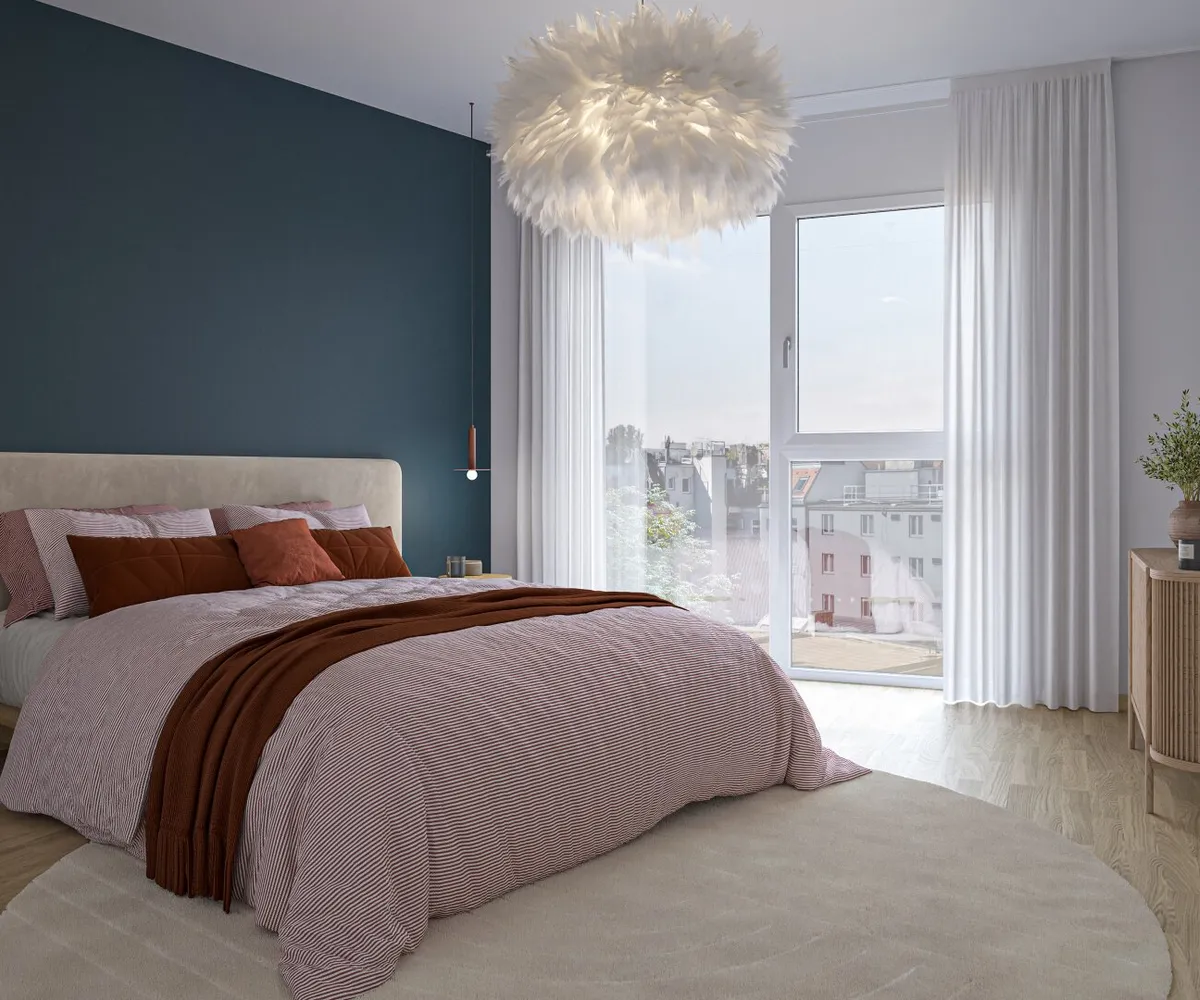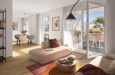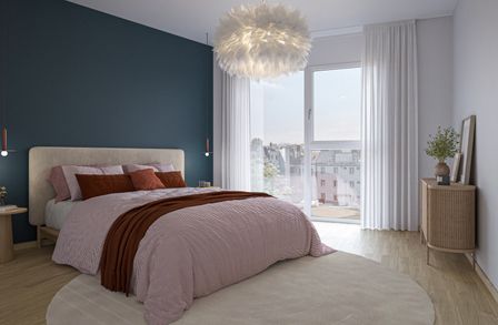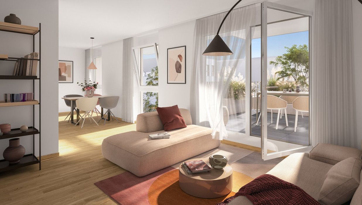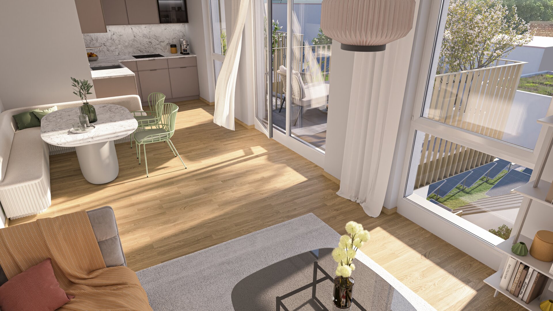 Die sorgfältig geplanten Eigentumswohnungen und Townhouses bieten mit ihren vielfältigen Grundrissen und Wohnungsgrößen für jede Lebensphase die ideale Wohnlösung. Ein behagliches Wohnambiente erzeugen die edlen Eichenparkettböden sowie die hochwertige Sanitärausstattung in den Bädern. Die Raumtemperatur lässt sich bequem über die Fußbodenheizung, die durch Fernwärme betrieben wird, sowie über die elektrisch bedienbaren Raffstores oder Rollläden regulieren. In den Dachgeschosswohnungen sorgen zusätzlich installierte Klimaanlagen dafür, dass es auch im Sommer angenehm kühl bleibt. Jede Wohneinheit verfügt über eine eigene private Freifläche, die die Wohnräume nach außen erweitert und einen idealen Rückzugsort für Erholung und Entspannung bietet.