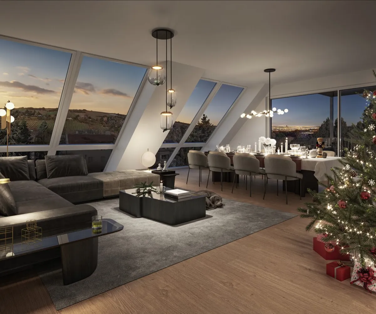 Am sonnigen Südhang des Kahlenbergs entsteht mit dem Wohnprojekt Unterer Schreiberweg 49 ein außergewöhnliches Refugium für all jene, die urbanes Leben mit Ruhe, Natur und stilvollem Wohnen verbinden möchten. Inmitten der sanften Weinberge des 19. Bezirks bietet dieser exklusive Neubau 11 hochwertig ausgestattete Eigentumswohnungen mit traumhaftem Ausblick und direktem Zugang zur Natur.