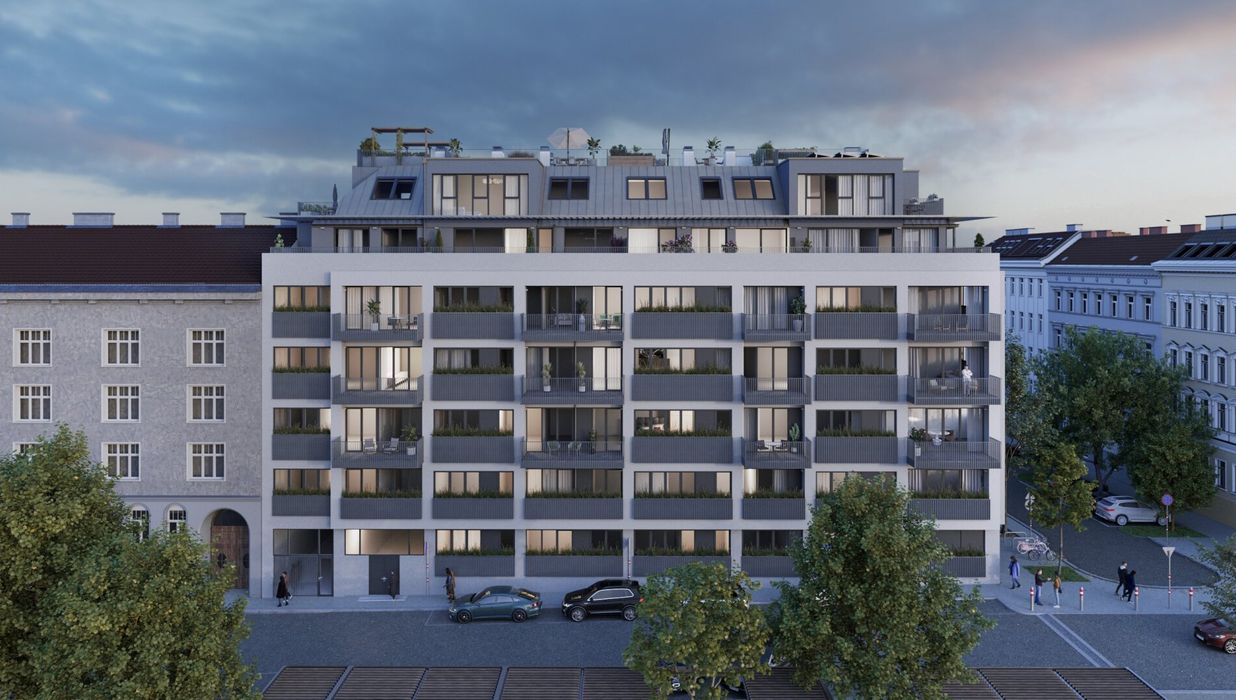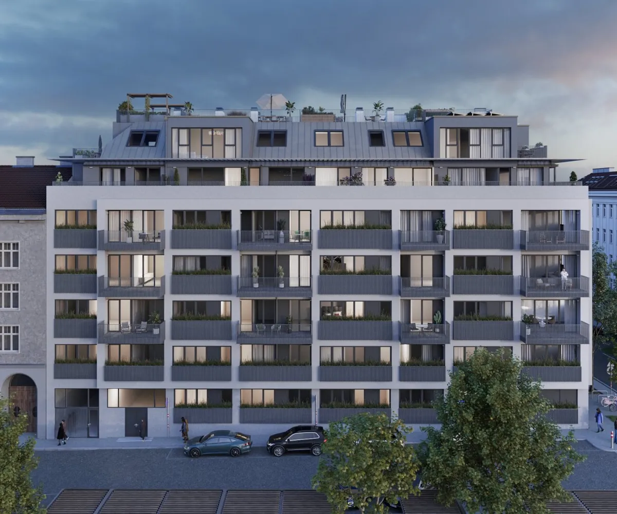 In einer verkehrsberuhigten Sackgasse und direkt am Arik-Brauer-Park gelegen entstehen 150 hochwertige Eigentumswohnungen mit Wohnflächen von ca. 30 m² bis 130 m², die für unterschiedlichste Lebensbedürfnisse und Wohnkonzepte ausgelegt sind. Die Wohnungen bieten attraktive Extras wie private Gärten, Balkone, Loggien und eine beeindruckende Panorama-Terrasse, die einen atemberaubenden 360° Panoramablick über Wien eröffnet. Mit großzügigen Raumhöhen schaffen wir ein offenes und luftiges Wohngefühl. Darüber hinaus stehen Tiefgaragenstellplätze zur Verfügung und moderne Energiekonzepte, wie Photovoltaik und Fernwärme, garantieren eine nachhaltige und effiziente Energieversorgung. Hier wohnen Sie stilvoll, zukunftsorientiert und überaus komfortabel.