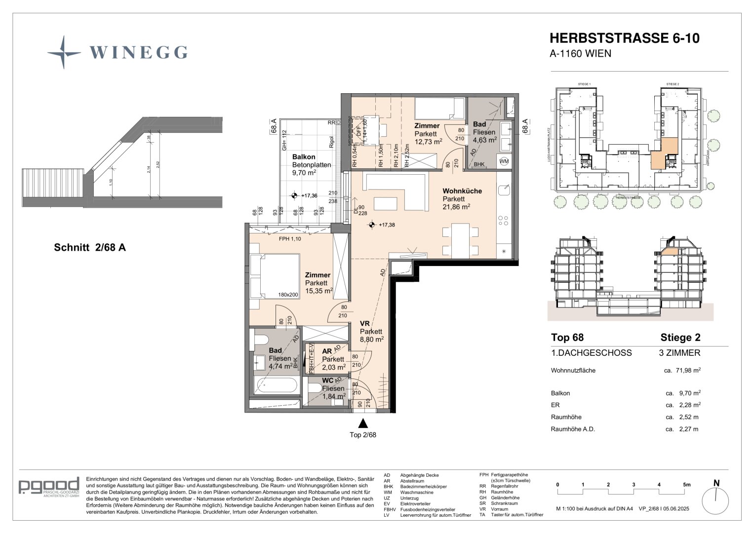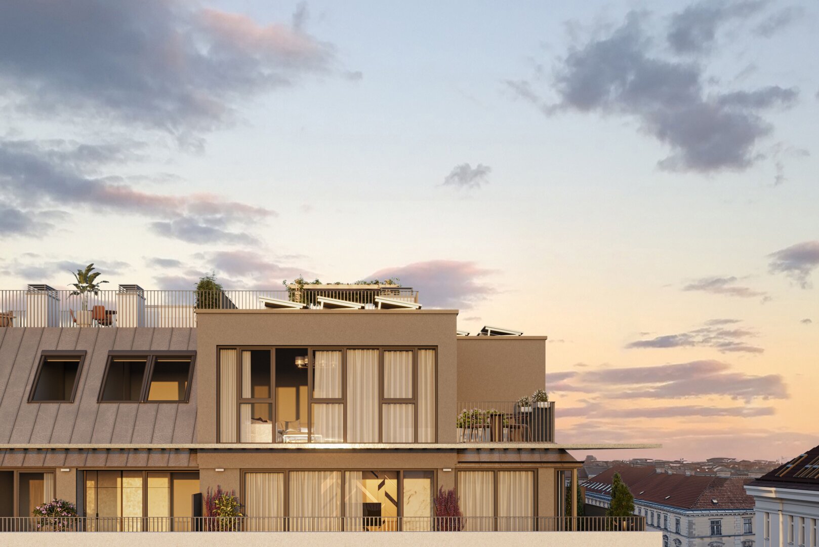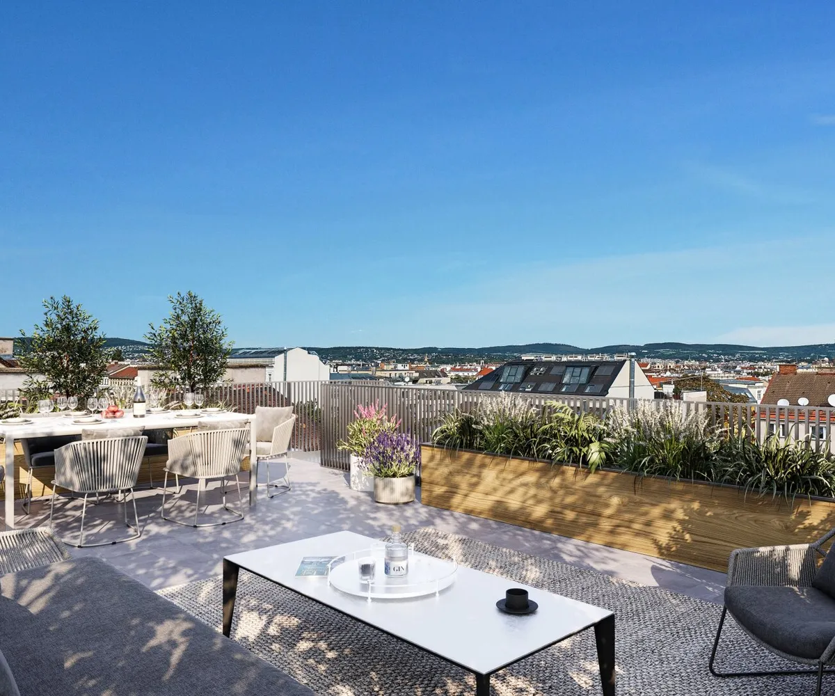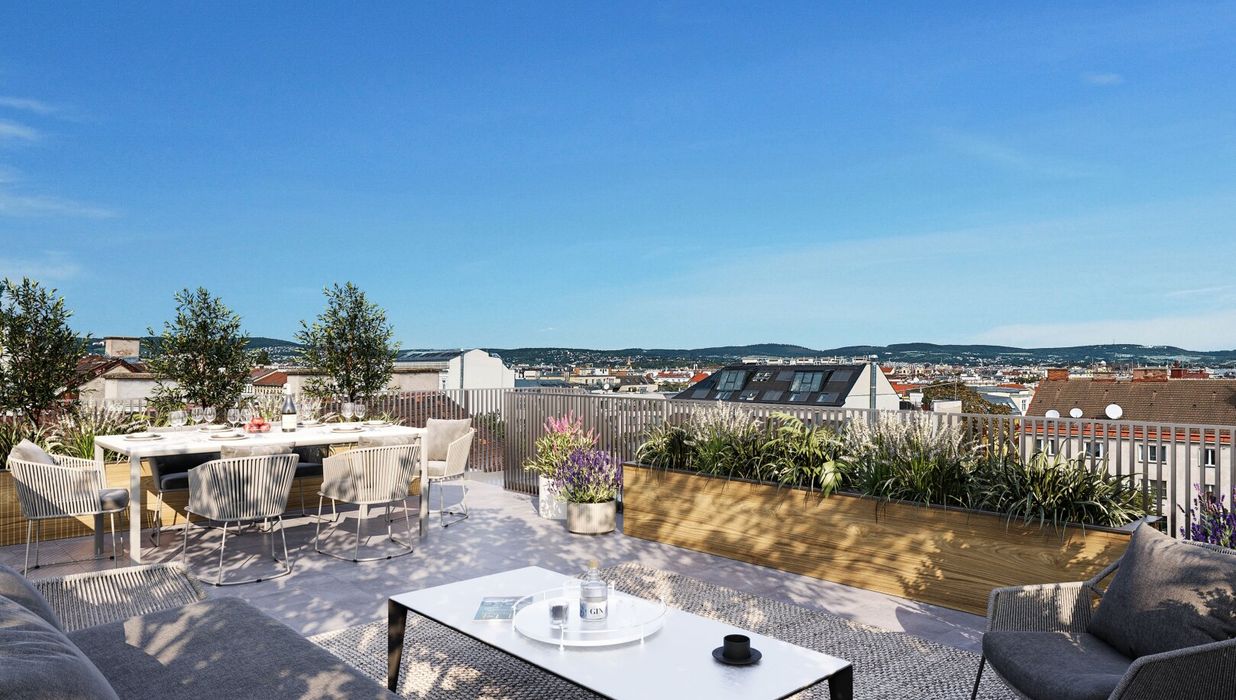 In einer verkehrsberuhigten Sackgasse und direkt am Arik-Brauer-Park gelegen entstehen 150 hochwertige Eigentumswohnungen mit Wohnflächen von ca. 30 m² bis 130 m², die für unterschiedlichste Lebensbedürfnisse und Wohnkonzepte ausgelegt sind. Die Wohnungen bieten attraktive Extras wie private Gärten, Balkone, Loggien und eine beeindruckende Panorama-Terrasse, die einen atemberaubenden 360° Panoramablick über Wien eröffnet. Mit großzügigen Raumhöhen schaffen wir ein offenes und luftiges Wohngefühl. Darüber hinaus stehen Tiefgaragenstellplätze zur Verfügung und moderne Energiekonzepte, wie Photovoltaik und Fernwärme, garantieren eine nachhaltige und effiziente Energieversorgung. Hier wohnen Sie stilvoll, zukunftsorientiert und überaus komfortabel.