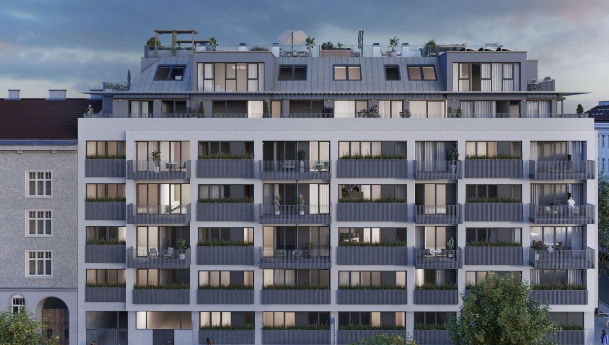 In einer verkehrsberuhigten Sackgasse und direkt am Arik-Brauer-Park gelegen entstehen 150 hochwertige Eigentumswohnungen mit Wohnflächen von ca. 30 m² bis 130 m², die für unterschiedlichste Lebensbedürfnisse und Wohnkonzepte ausgelegt sind. Die Wohnungen bieten attraktive Extras wie private Gärten, Balkone, Loggien und eine beeindruckende Panorama-Terrasse, die einen atemberaubenden 360° Panoramablick über Wien eröffnet. Mit großzügigen Raumhöhen schaffen wir ein offenes und luftiges Wohngefühl. Darüber hinaus stehen Tiefgaragenstellplätze zur Verfügung und moderne Energiekonzepte, wie Photovoltaik und Fernwärme, garantieren eine nachhaltige und effiziente Energieversorgung. Hier wohnen Sie stilvoll, zukunftsorientiert und überaus komfortabel.