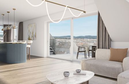 In einer verkehrsberuhigten Sackgasse und direkt am Arik-Brauer-Park gelegen entstehen 150 hochwertige Eigentumswohnungen mit Wohnflächen von ca. 30 m² bis 130 m², die für unterschiedlichste Lebensbedürfnisse und Wohnkonzepte ausgelegt sind. Die Wohnungen bieten attraktive Extras wie private Gärten, Balkone, Loggien und eine beeindruckende Panorama-Terrasse, die einen atemberaubenden 360° Panoramablick über Wien eröffnet. Mit großzügigen Raumhöhen schaffen wir ein offenes und luftiges Wohngefühl. Darüber hinaus stehen Tiefgaragenstellplätze zur Verfügung und moderne Energiekonzepte, wie Photovoltaik und Fernwärme, garantieren eine nachhaltige und effiziente Energieversorgung. Hier wohnen Sie stilvoll, zukunftsorientiert und überaus komfortabel.