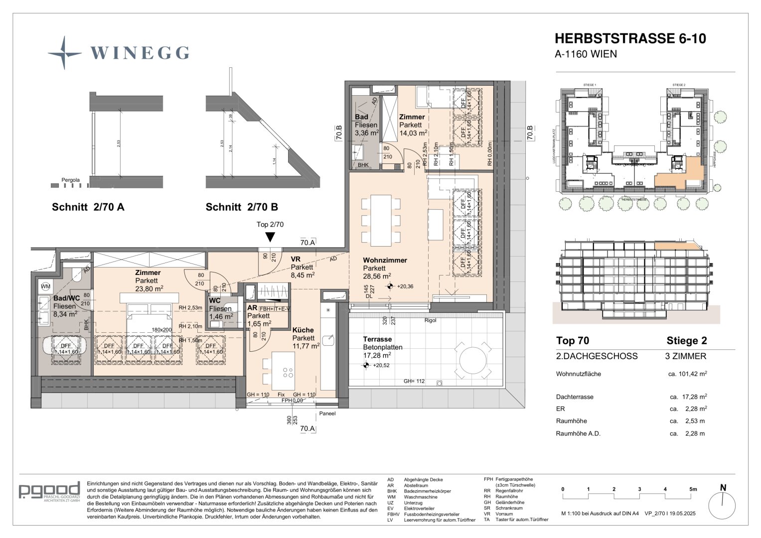 In einer verkehrsberuhigten Sackgasse und direkt am Arik-Brauer-Park gelegen entstehen 150 hochwertige Eigentumswohnungen mit Wohnflächen von ca. 30 m² bis 130 m², die für unterschiedlichste Lebensbedürfnisse und Wohnkonzepte ausgelegt sind. Die Wohnungen bieten attraktive Extras wie private Gärten, Balkone, Loggien und eine beeindruckende Panorama-Terrasse, die einen atemberaubenden 360° Panoramablick über Wien eröffnet. Mit großzügigen Raumhöhen schaffen wir ein offenes und luftiges Wohngefühl. Darüber hinaus stehen Tiefgaragenstellplätze zur Verfügung und moderne Energiekonzepte, wie Photovoltaik und Fernwärme, garantieren eine nachhaltige und effiziente Energieversorgung. Hier wohnen Sie stilvoll, zukunftsorientiert und überaus komfortabel.