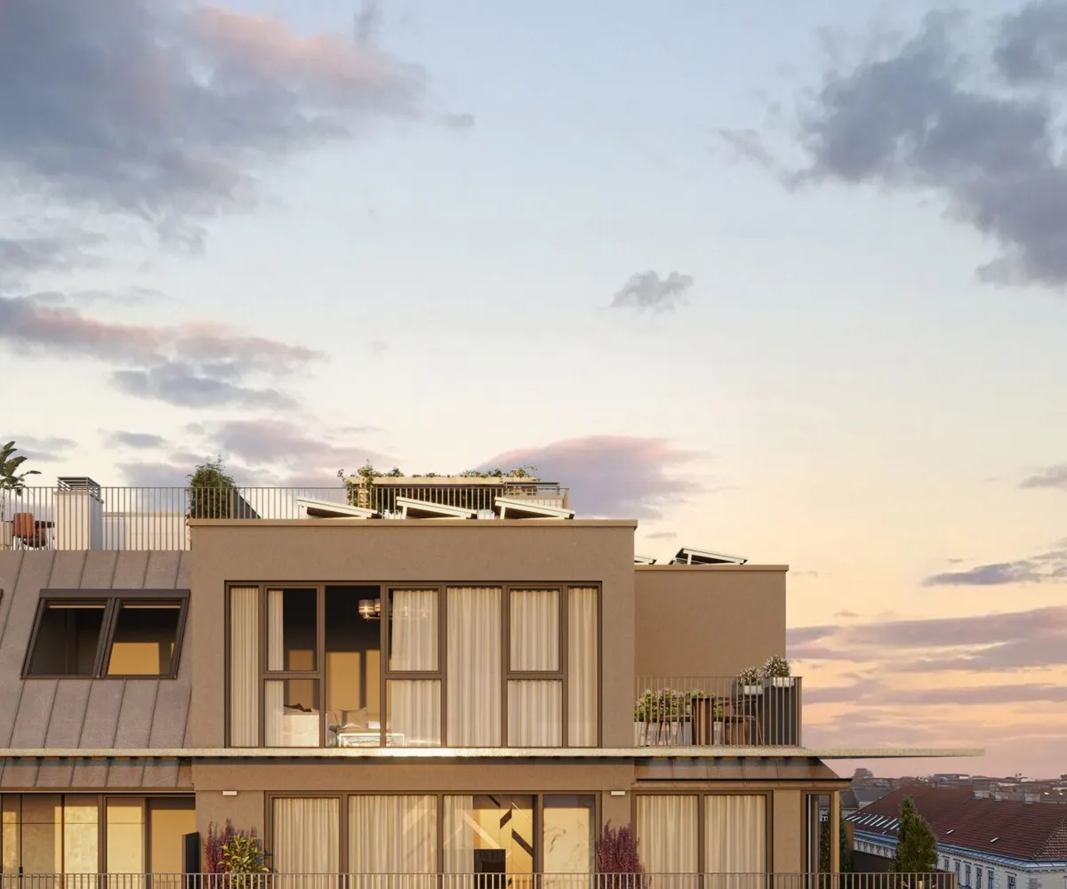 In einer verkehrsberuhigten Sackgasse und direkt am Arik-Brauer-Park gelegen entstehen 150 hochwertige Eigentumswohnungen mit Wohnflächen von ca. 30 m² bis 130 m², die für unterschiedlichste Lebensbedürfnisse und Wohnkonzepte ausgelegt sind. Die Wohnungen bieten attraktive Extras wie private Gärten, Balkone, Loggien und eine beeindruckende Panorama-Terrasse, die einen atemberaubenden 360° Panoramablick über Wien eröffnet. Mit großzügigen Raumhöhen schaffen wir ein offenes und luftiges Wohngefühl. Darüber hinaus stehen Tiefgaragenstellplätze zur Verfügung und moderne Energiekonzepte, wie Photovoltaik und Fernwärme, garantieren eine nachhaltige und effiziente Energieversorgung. Hier wohnen Sie stilvoll, zukunftsorientiert und überaus komfortabel.