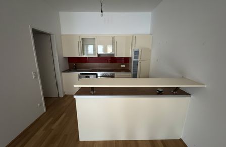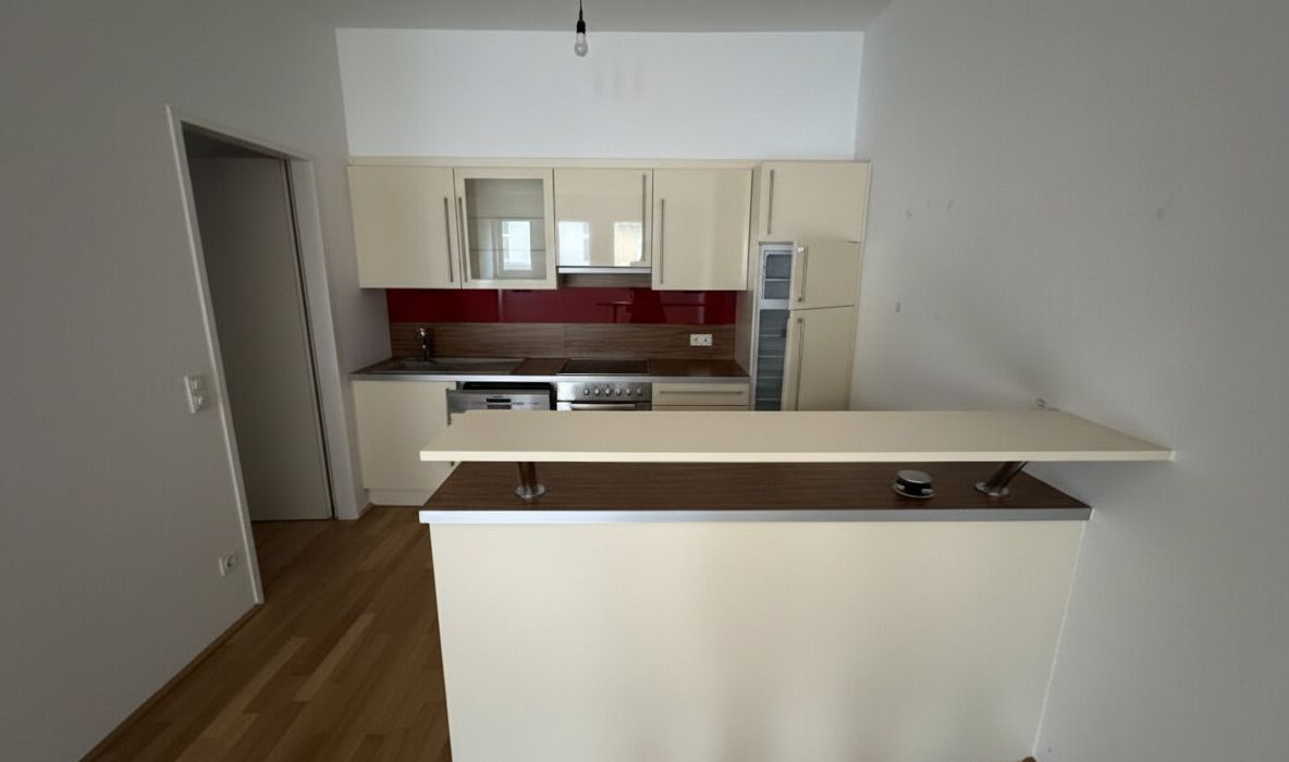 Die großzügige Wohnküche ist mit einer modernen Einbauküche ausgestattet und bildet den zentralen Lebensmittelpunkt der Wohnung.