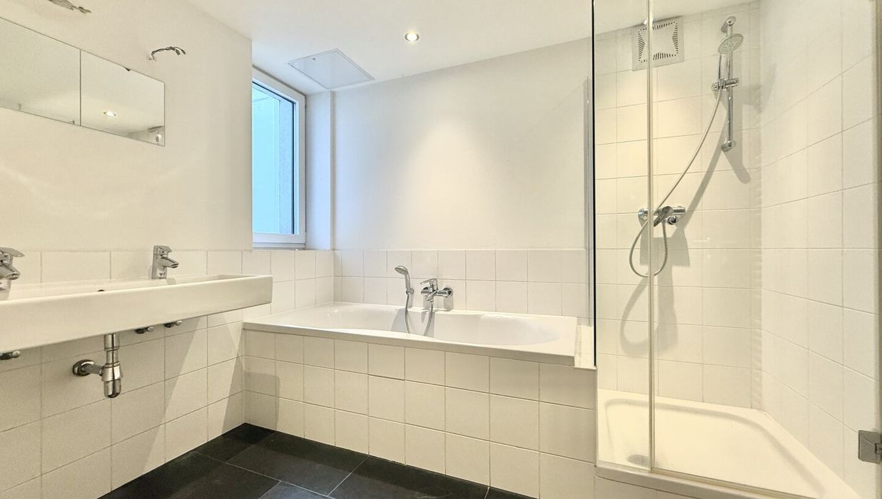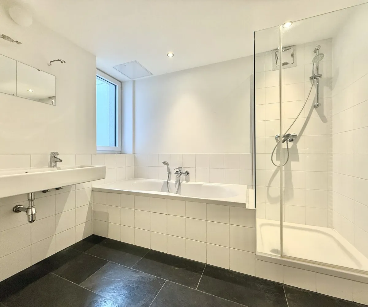 2 moderne Badezimmer , jeweils mit Dusche, Waschbecken und Waschmaschinenanschluss (eines der Bäder zusätzlich mit komfortabler Badewanne)