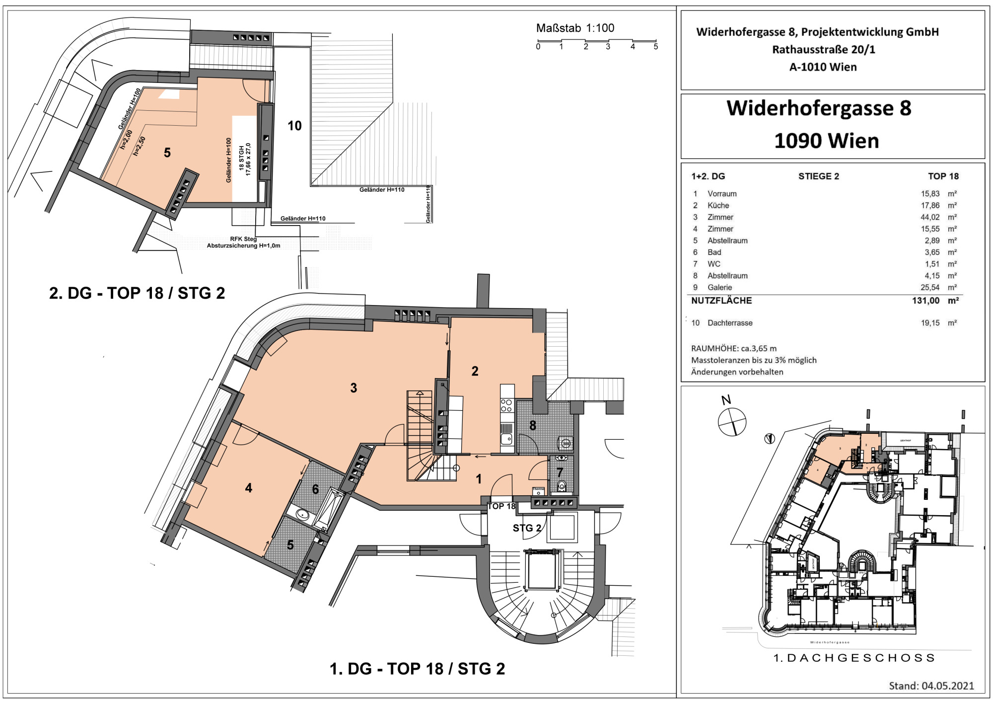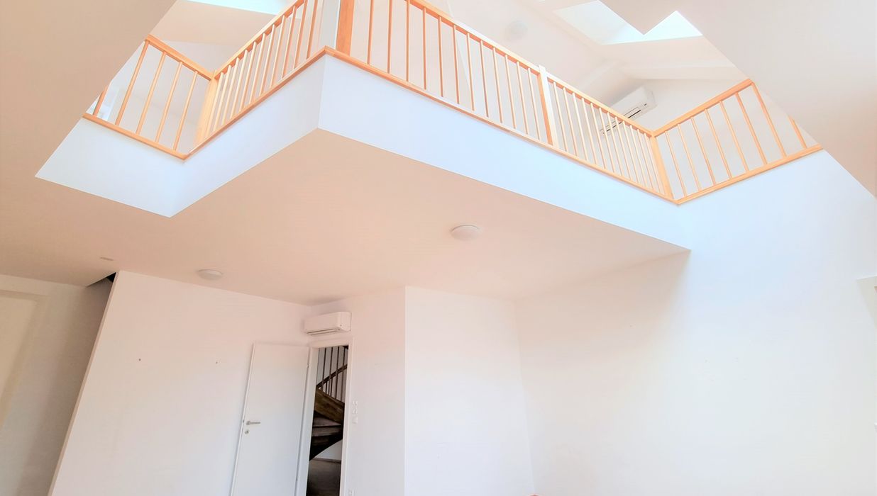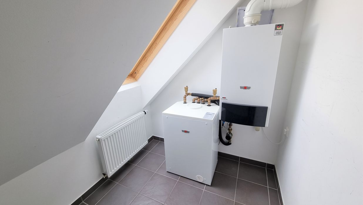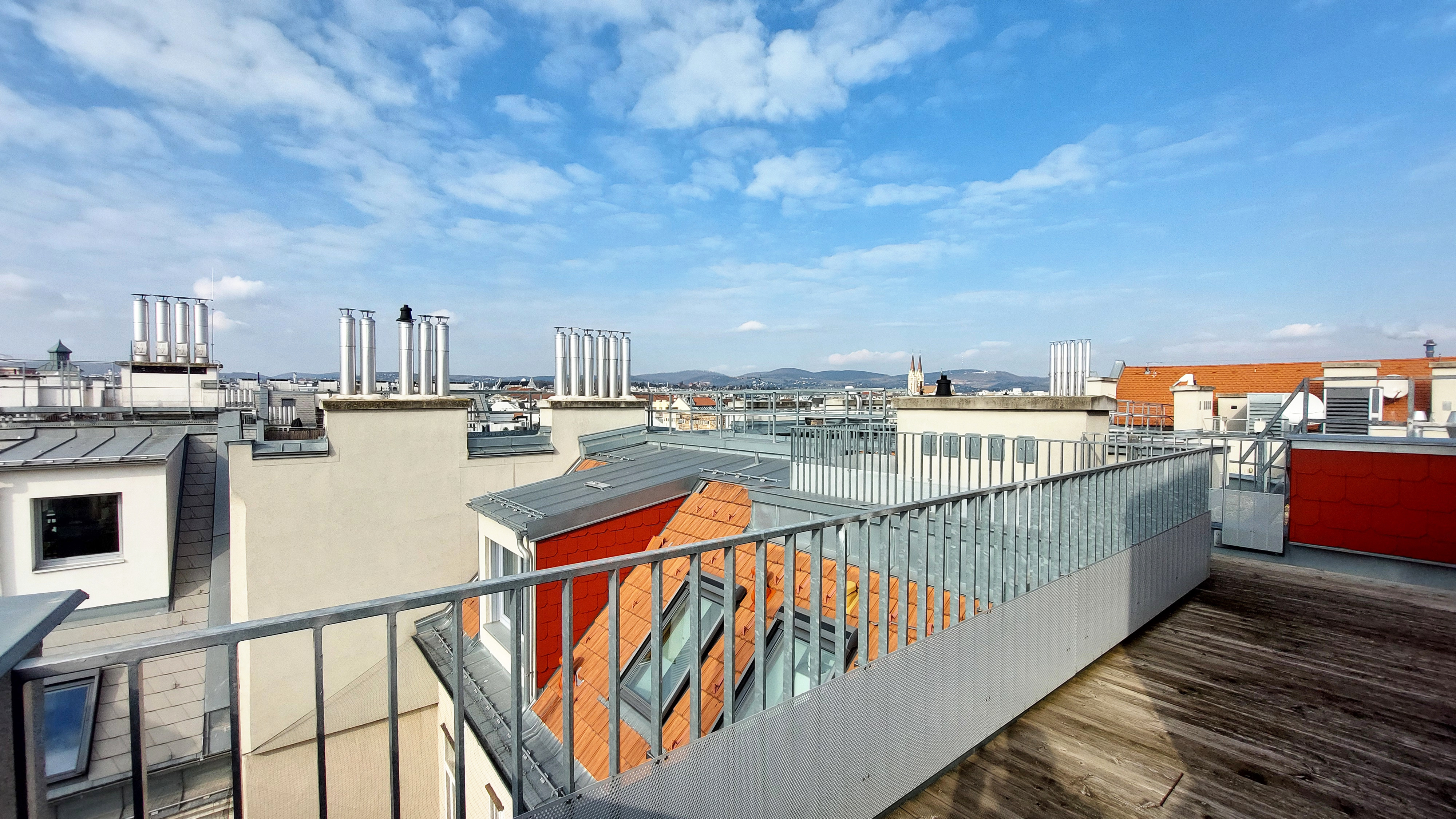 Die Wohnung selbst erstreckt sich über das 1. und 2. Dachgeschoß und verfügt über einen großzügigen Wohnraum, eine separate Küche, ein Schlafzimmer, eine Galerie, ein Badezimmer mit Badewanne, ein separates WC und zwei Abstellräume, einer davon mit Waschmaschinenanschluss. Eine große Terrasse lädt zum gemütlichen Beisammensein ein.