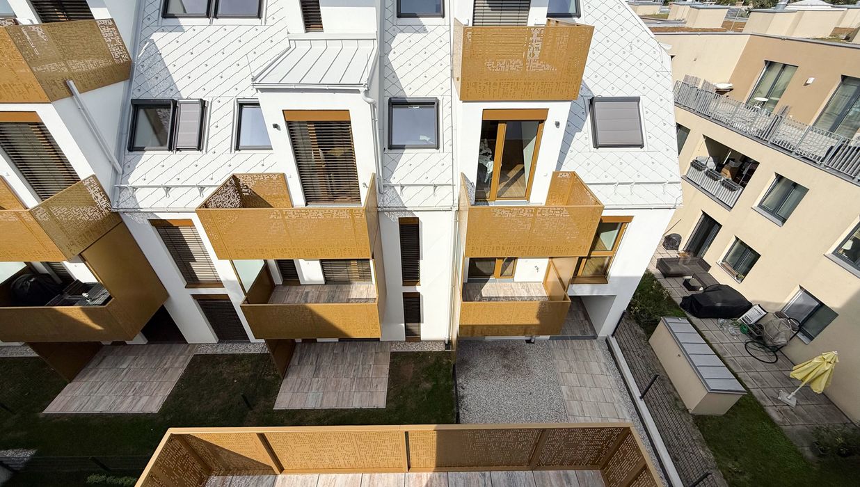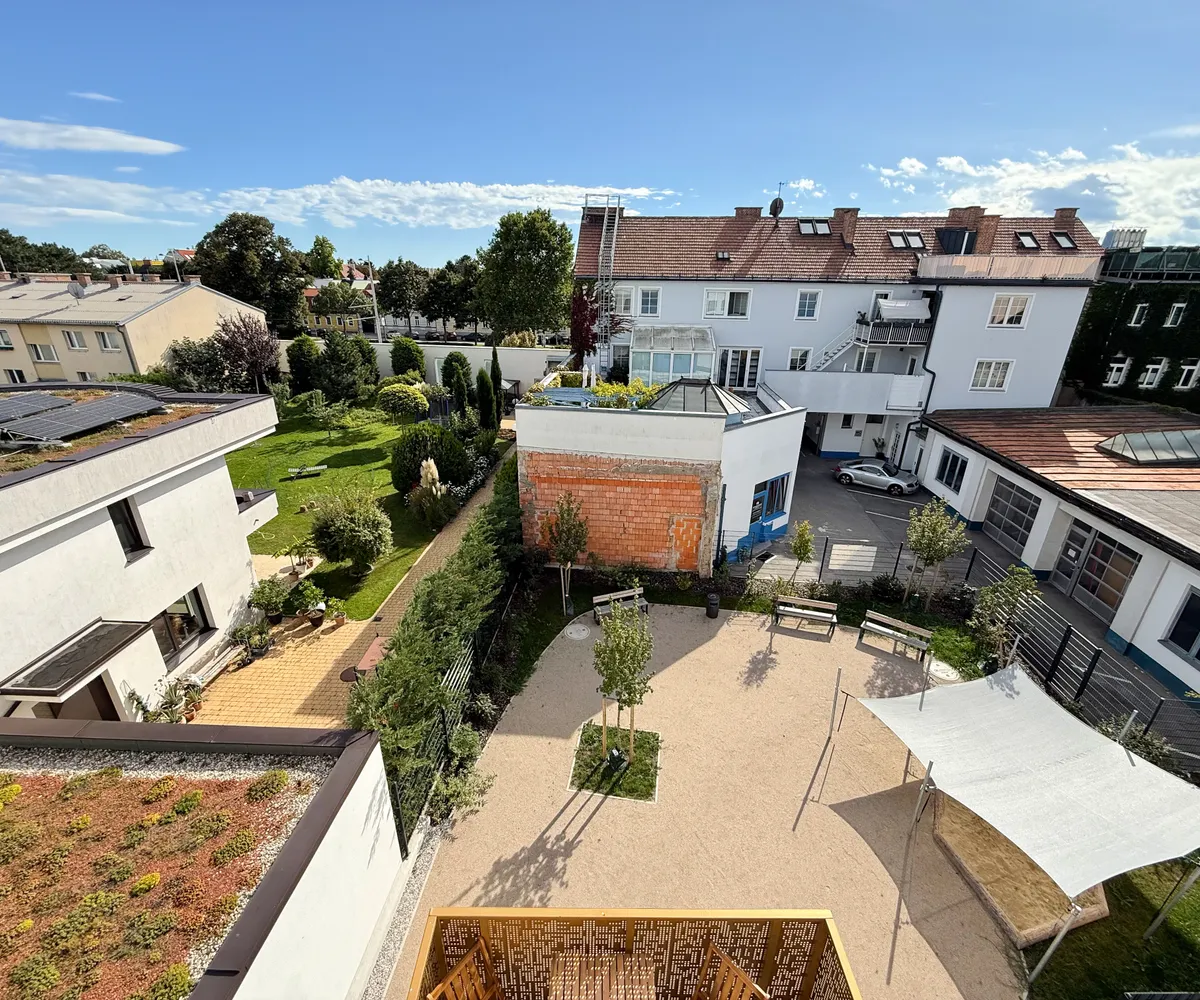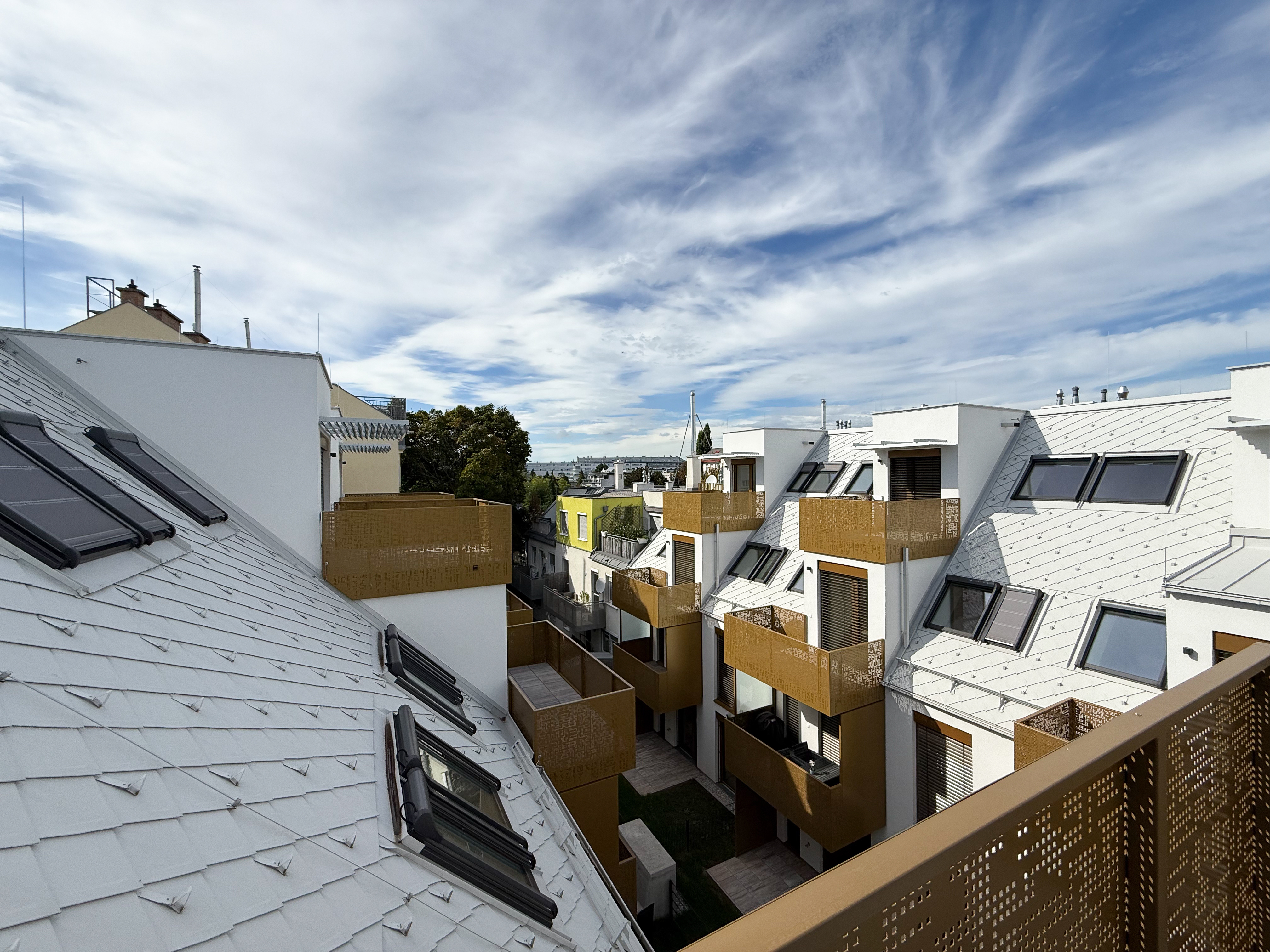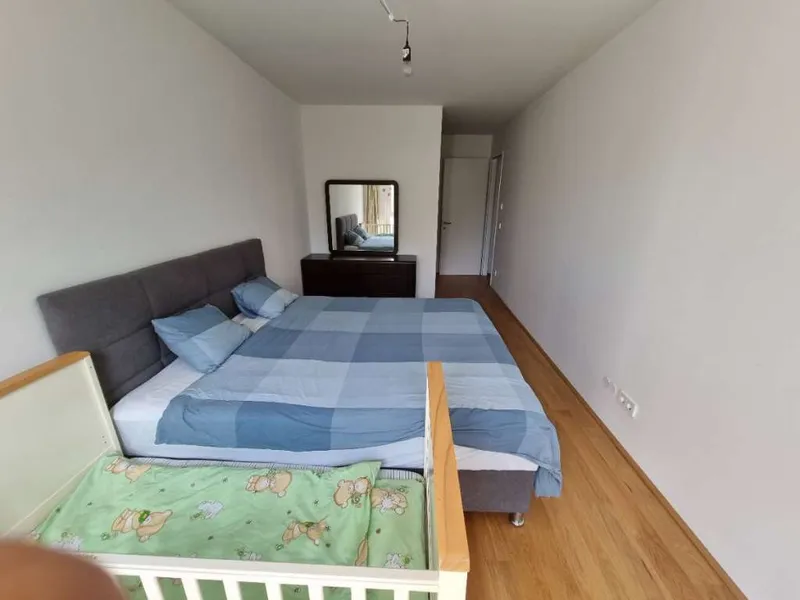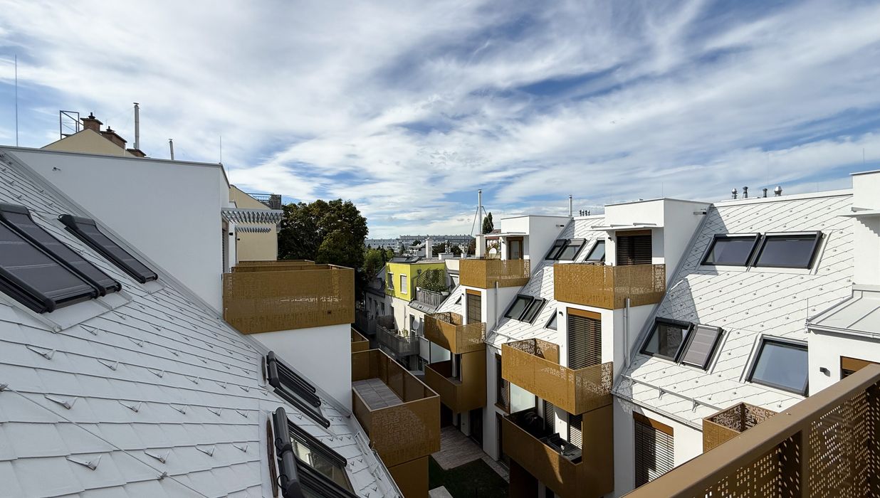 Die Wohnung ist mit hochwertigen Parkettböden in den Wohnräumen, modernen Fliesen in den Nassbereichen sowie zeitgemäßer Haustechnik ausgestattet. Großflächige Fensterflächen mit Sonnenschutz sorgen für helle Räume und ein angenehmes Wohngefühl. Das Gebäude verfügt außerdem über Fahrradabstellplätze , Kinderwagenräume und ein begrüntes Flachdach .