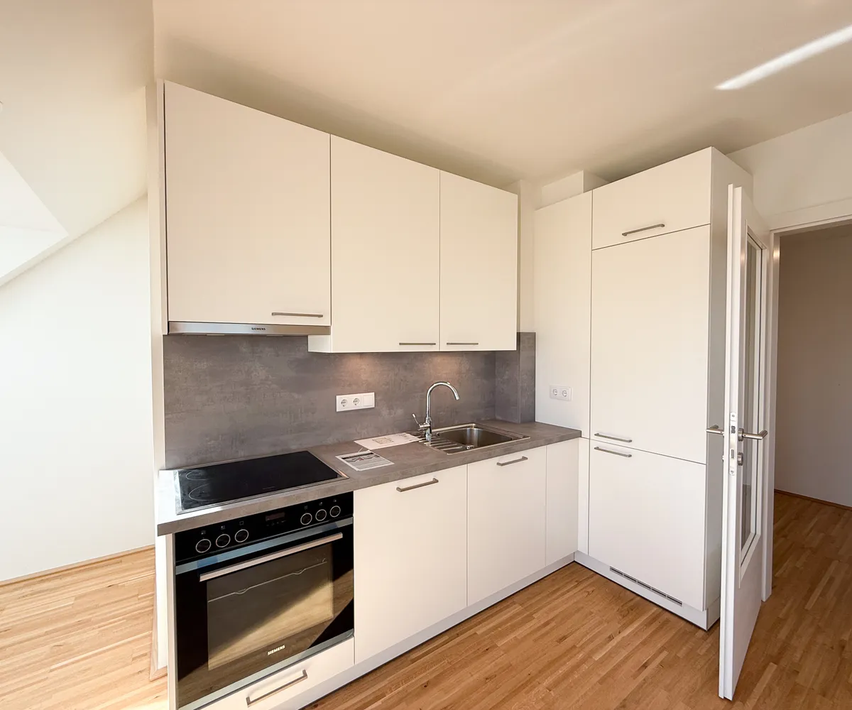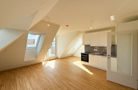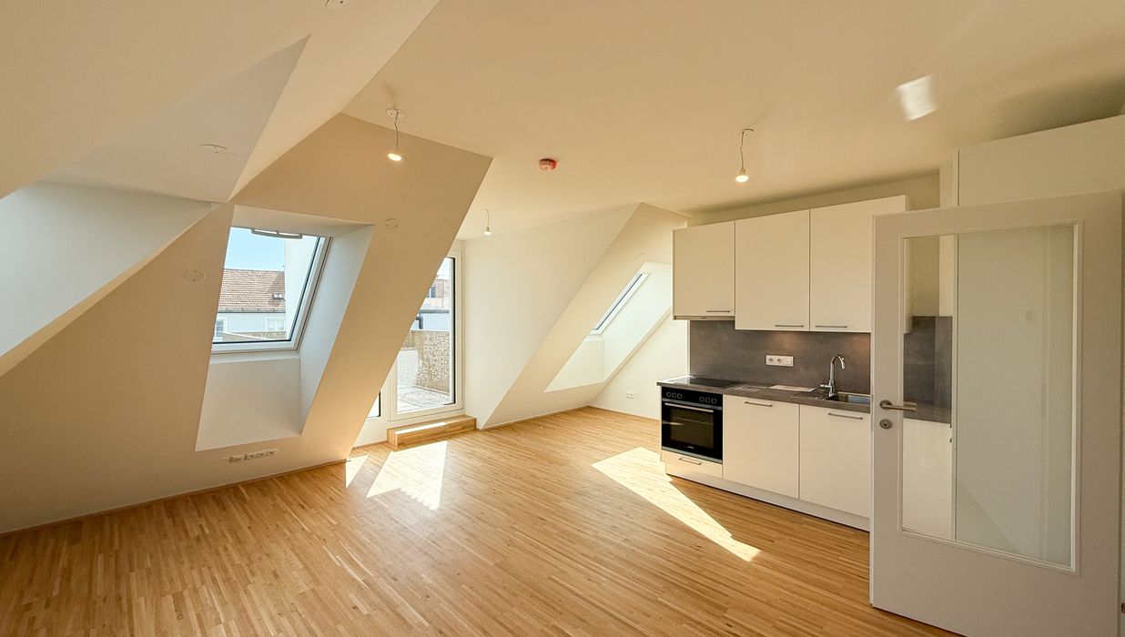Diese moderne 2-Zimmer-Wohnung befindet sich im 2. Dachgeschoss des Projekts Am Langen Felde 24 in Kagran und überzeugt durch ihre großzügige Wohnküche, eine durchdachte Raumaufteilung sowie zwei sonnige Terrassen.