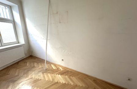 Die Wohnung ist sanierungsbedürftig und bietet damit eine gute Basis zur Umsetzung individueller Wohnkonzepte. Charakteristische Altbaudetails wie Flügeltüren und Parkettboden unterstreichen den ursprünglichen Charme der Immobilie. Beheizt wird die Wohnung mittels Etagenheizung .