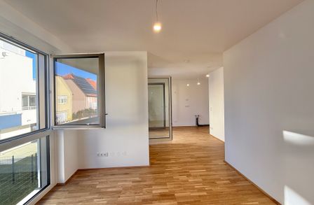 Die Wohnung liegt im 1. Liftstock und bietet ca. 57 m² Wohnfläche. Der gut geschnittene Grundriss ermöglicht eine klare Trennung zwischen Wohnbereich und den weiteren Zimmern. Alle Räume sind zentral vom Vorraum aus begehbar. Der ca. 8 m² große Balkon ist von der Wohnküche aus zugänglich.