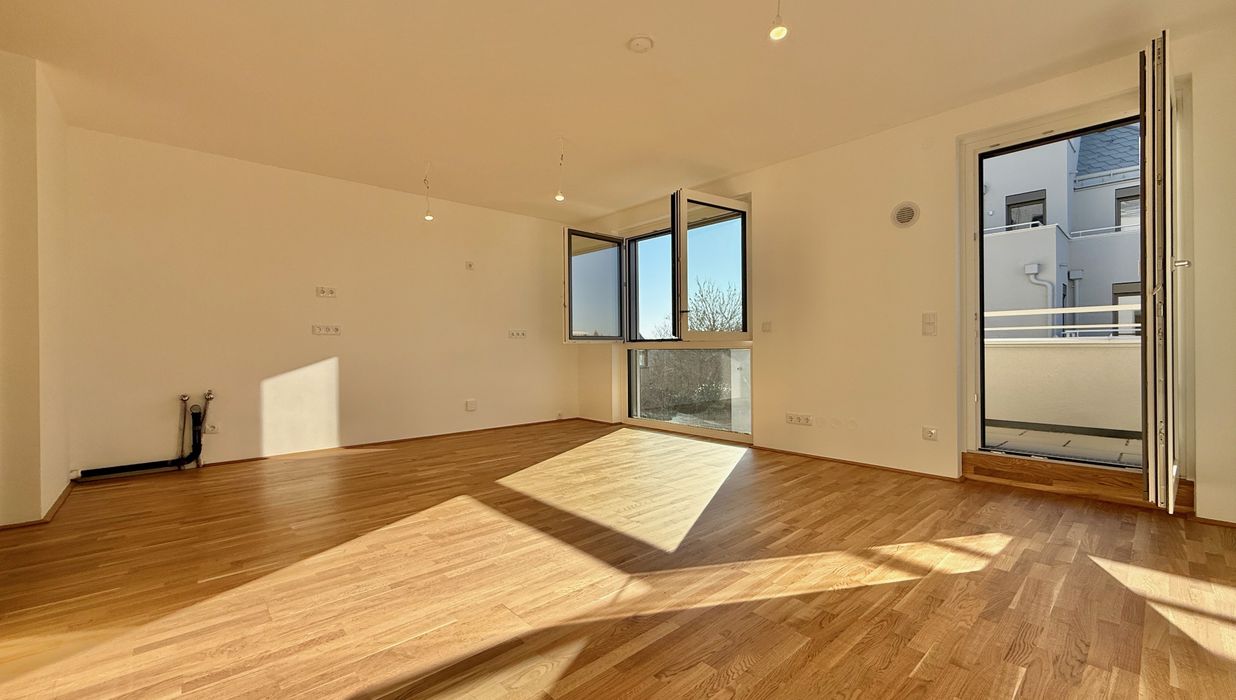 Die ca. 49 m² große Wohnung befindet sich im 3. Liftstock. Die Terrasse mit ca. 7 m² ist direkt von der Wohnküche aus begehbar. Alle Räume sind mit großflächigen, bodentiefen Fenstern ausgestattet und bieten ein freundlich-helles Wohnambiente.