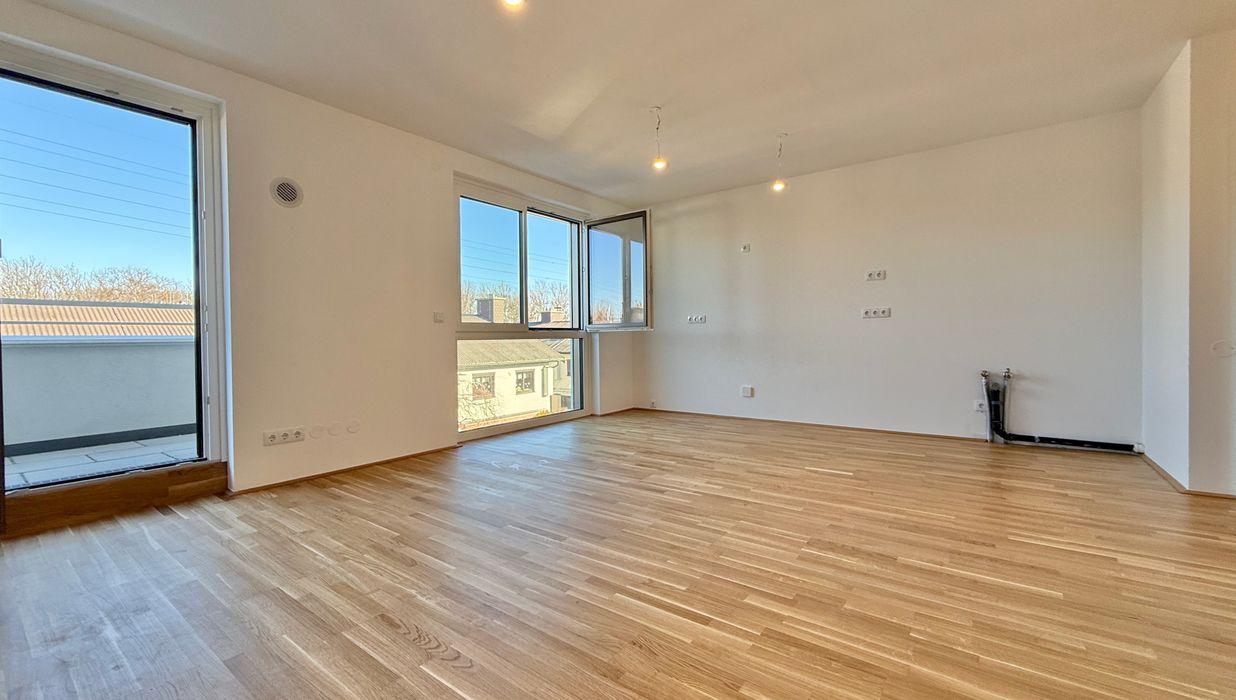 Die ca. 49 m² große Wohnung befindet sich im 3. Liftstock. Die Terrasse mit ca. 7 m² ist direkt von der Wohnküche aus begehbar. Alle Räume sind mit großflächigen, bodentiefen Fenstern ausgestattet und bieten ein freundlich-helles Wohnambiente.