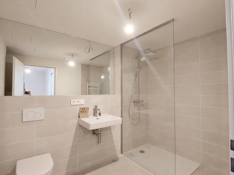 Die ca. 49 m² große Wohnung befindet sich im 3. Liftstock. Die Terrasse mit ca. 7 m² ist direkt von der Wohnküche aus begehbar. Alle Räume sind mit großflächigen, bodentiefen Fenstern ausgestattet und bieten ein freundlich-helles Wohnambiente.