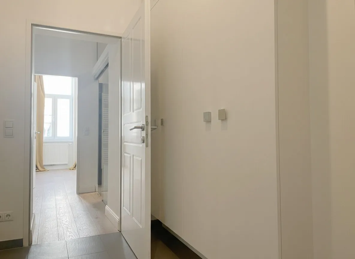 Die durchdachte Raumaufteilung schenkt Alltagsspielraum, Ruhe und Bewegungsfreiheit zugleich. Ein Personenaufzug sorgt für einen angenehmen Zugang zur Wohnung, ein zugeordnetes Kellerabteil ergänzt das Raumangebot. Für den urbanen Alltag besonders praktisch: Ein Fahrradraum, der direkt von der Straße aus befahrbar ist.
