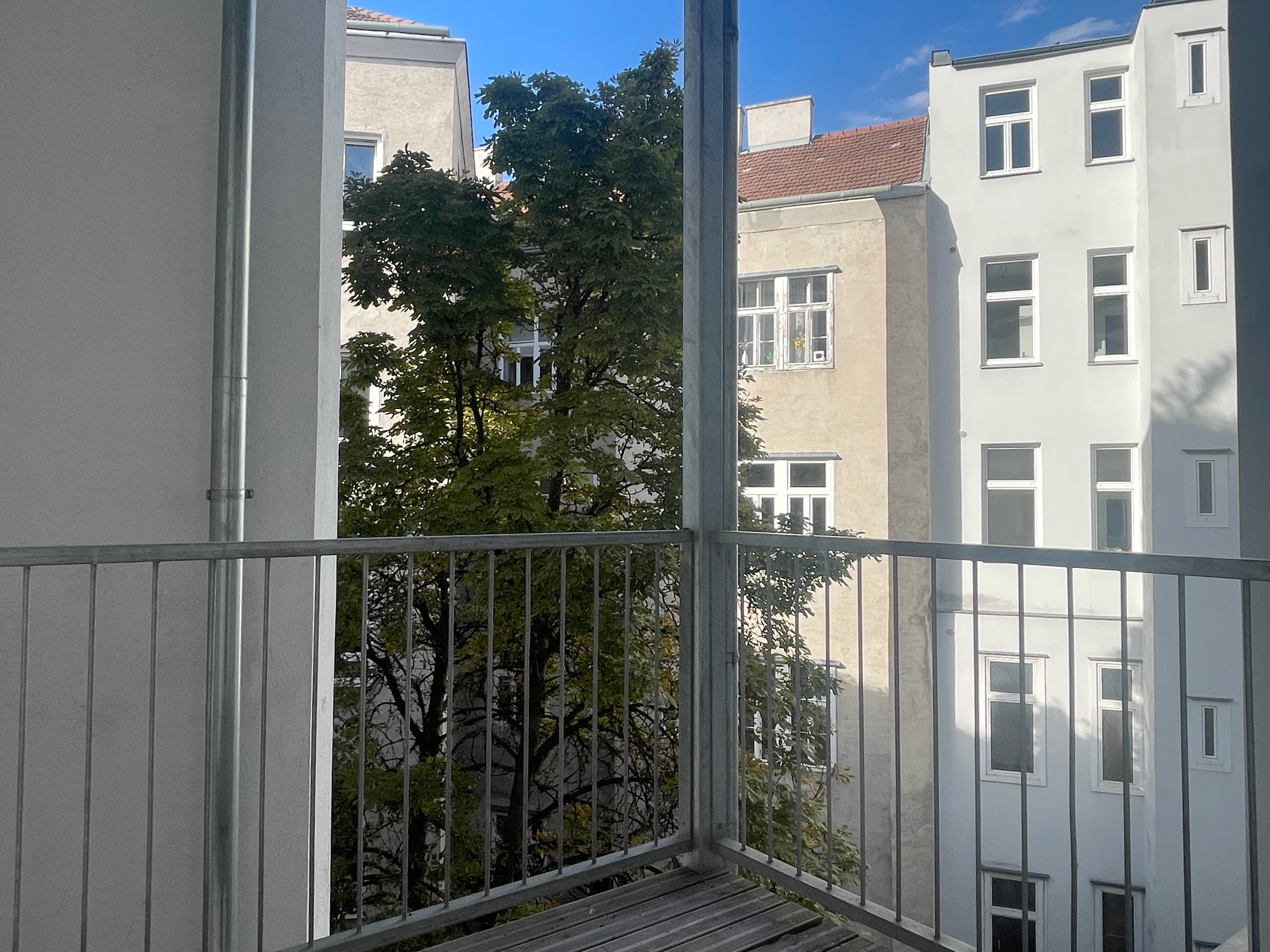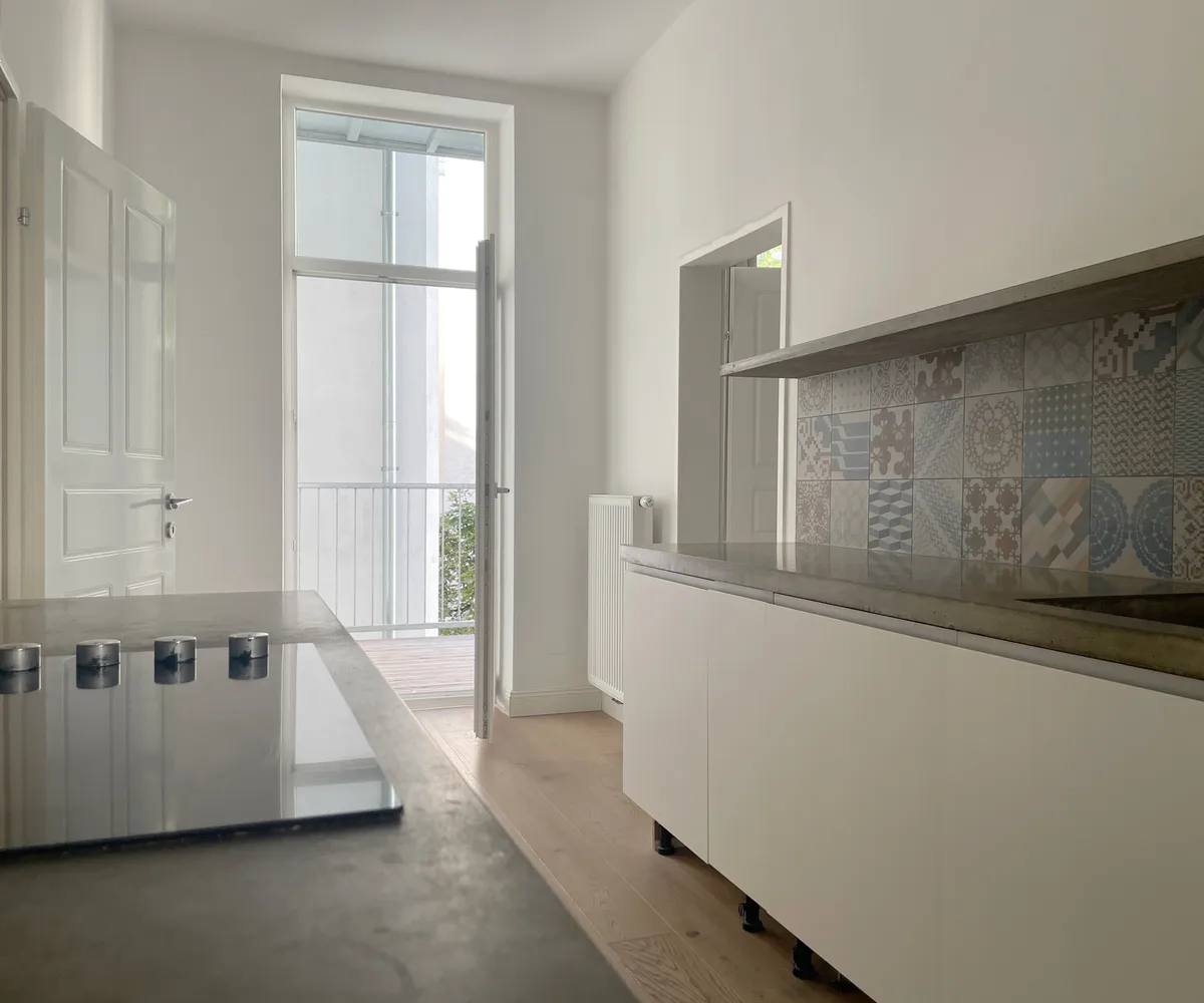 Ein seltener Vorzug, der große Balkon in den Innenhof bietet Raum für entspannte Stunden. Eine Besonderheit, die man in klassischen Altbauwohnungen nur selten vorfindet.