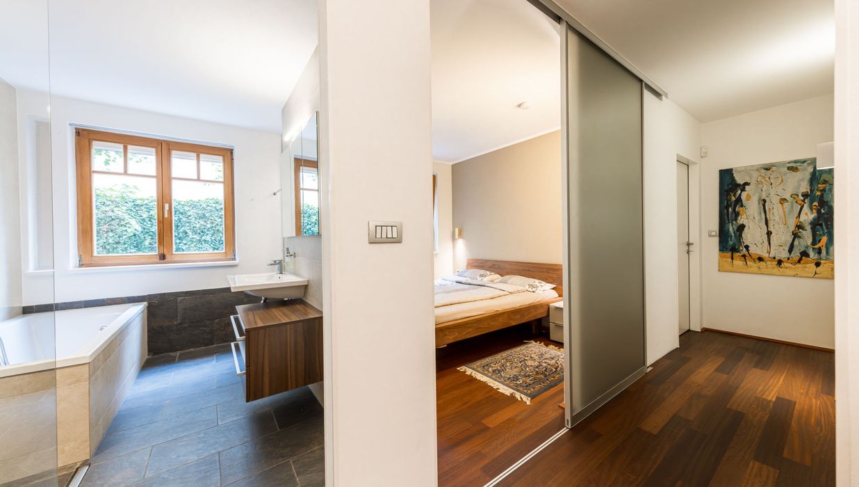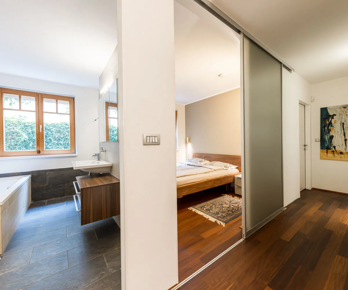 Aber auch für all jene, die Wohnen und Arbeiten unter einem Dach vereinen möchten, ist diese Wohnung ideal geeignet ! Durch den separaten Zugang über die vordere Terrasse bietet die Wohnung perfekte Voraussetzungen, um einen Bereich als Büro oder Praxis zu gestalten.