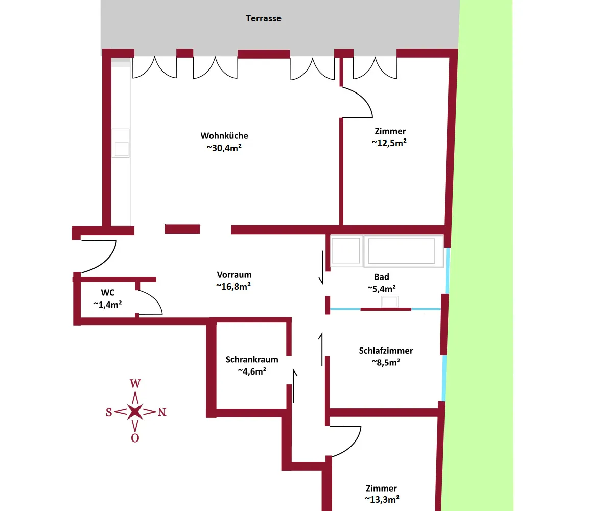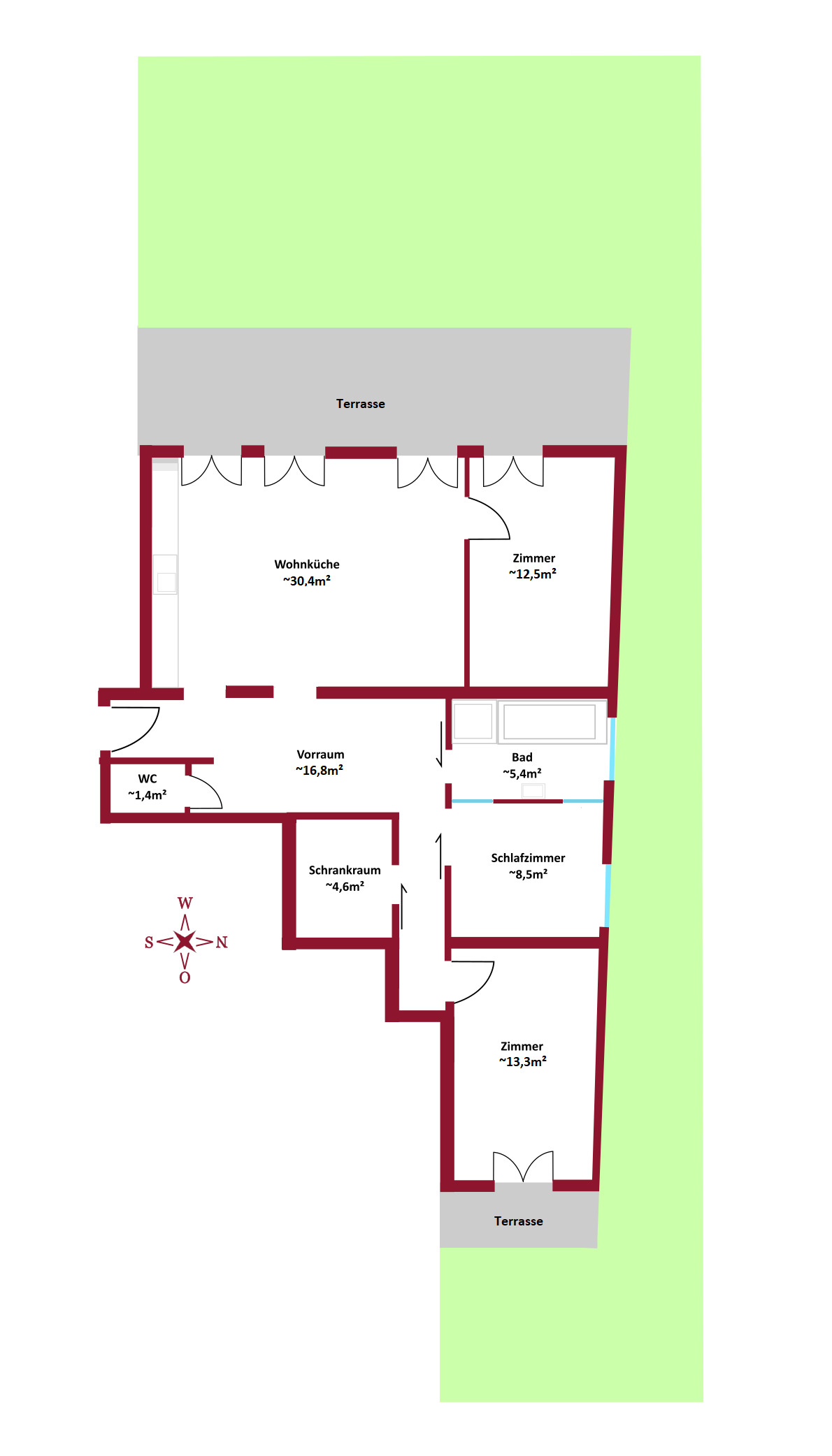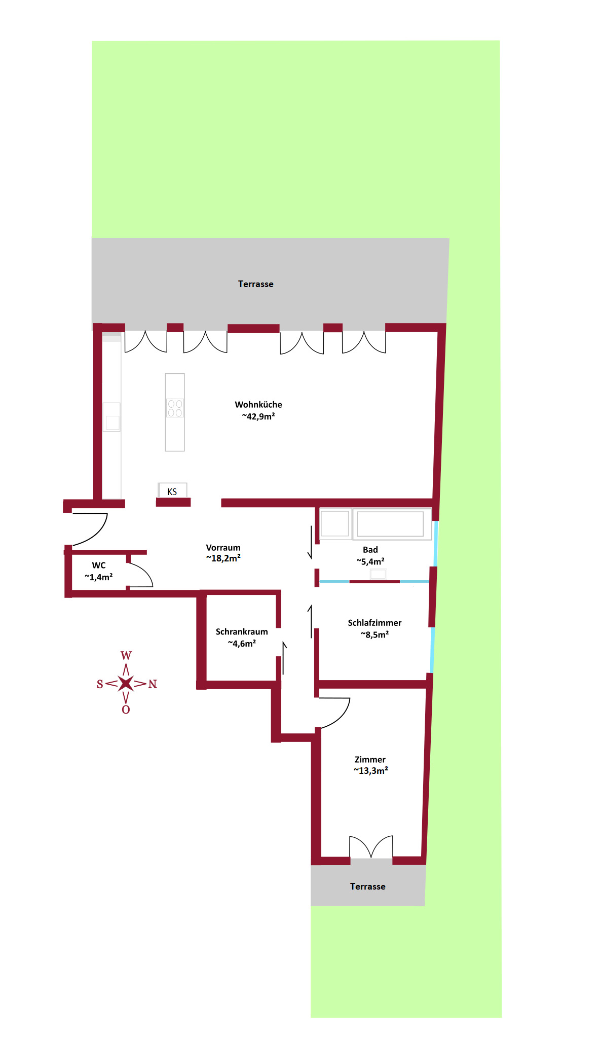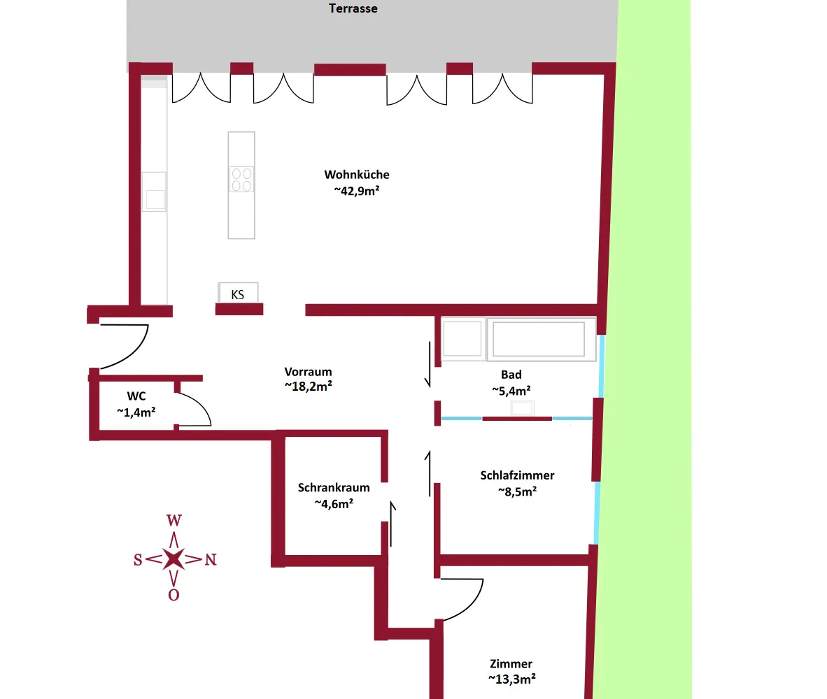 Die Wohnfläche von ca. 93m² erstreckt sich über die folgenden Räumlichkeiten: