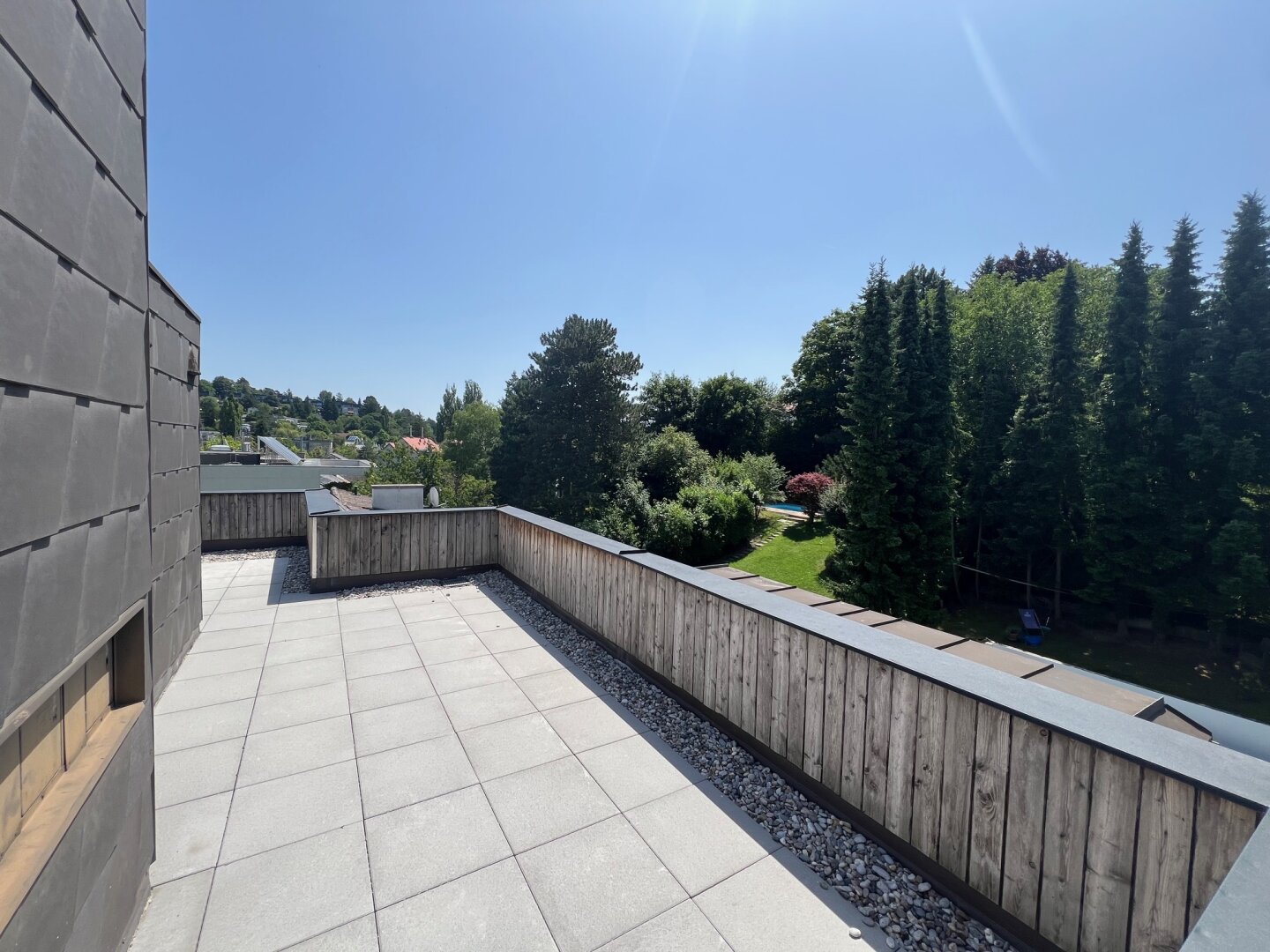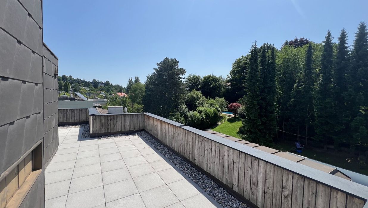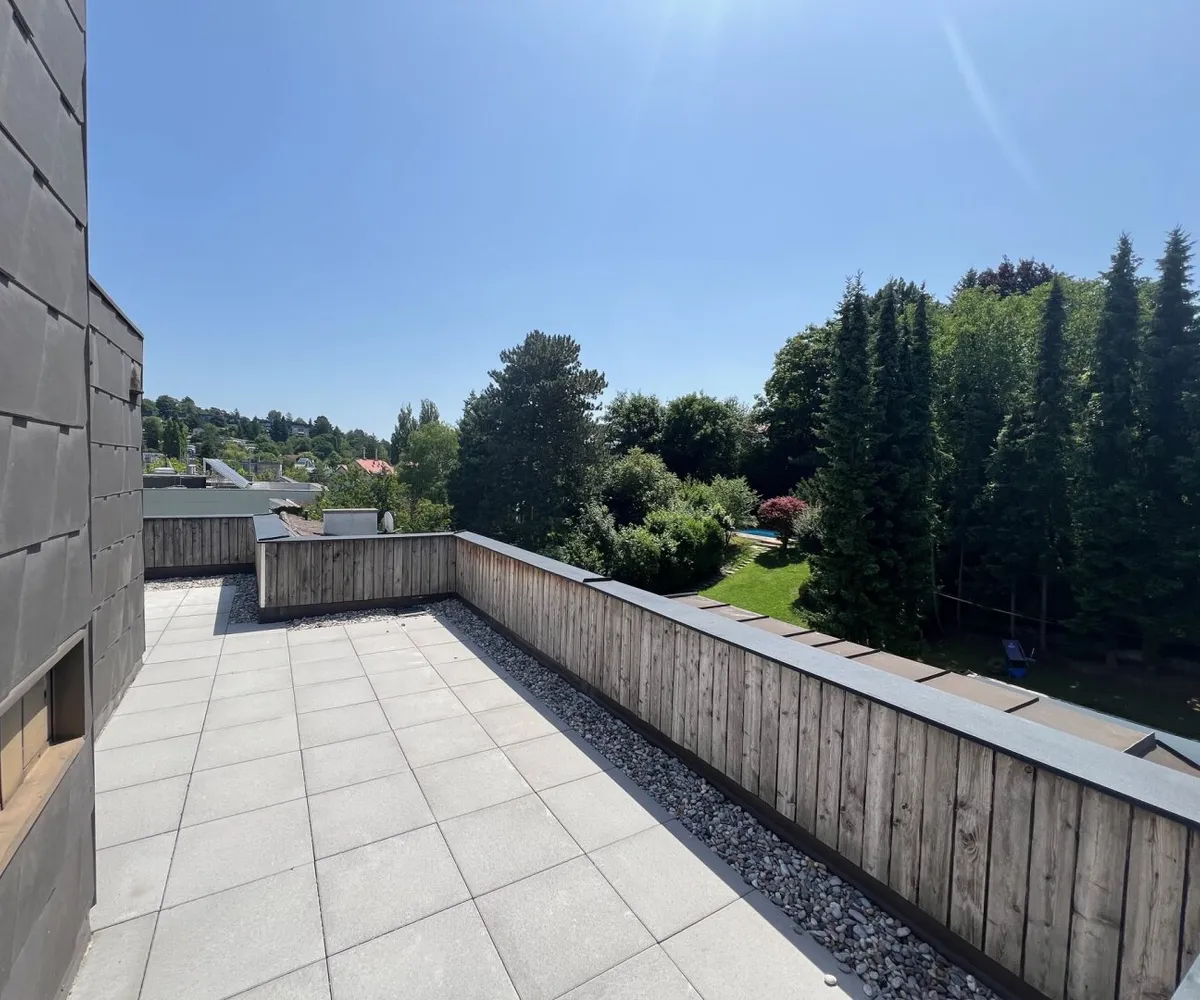 Die Liegenschaft liegt direkt in Neustift am Walde, ein begehrter Weinort von Wien. In der Nähe gibt es eine gute Auswahl an Nahversorgern. Mit der zur Verfügung stehenden Buslinie 35 A können verschiedene öffentliche Verkehrsträger angefahren werden. Naherholungsgebiete wie zum Beispiel der Pötzleinsdorfer Park, der Türkenschanzparkt, sowie die Höhenstrasse können schnell erreicht werden. Die optimale Verbindung von West nach Nord kann mit dem Kraftfahrzeug hervorragend genutzt werden. Die ca. 164 m2 große 5 Zimmerwohnung liegt im 3. Liftstock. Der prachtvolle Wohn- & Essraum ist direkt in den schön gestalteten Garten gerichtet. Der hervorragende Grundriss garantiert eine optimale Raumausnutzung. Ein besonderes Highlight dieser Wohnung ist die dazugehörige Dachterrasse (diese ist sowohl vom Stiegenhaus als auch Lift zu erreichen). Mit ca. 92 m2 Fläche bietet diese viel Platz zum Erholen und ermöglicht aufgrund der 360 Grad Aussicht Sonnenstrahlen bis zum Sonnenuntergang.
