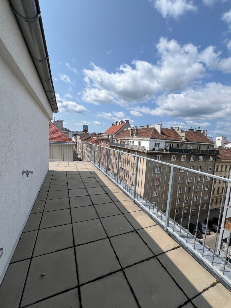 Ein absolutes Highlight dieser Immobilie ist die private Terrasse, die Ihnen nicht nur einen atemberaubenden Blick über die Dächer Wiens bietet, sondern auch der perfekte Ort ist, um den Feierabend bei einem Glas oder beim Frühstück in der Morgensonne zu genießen. Stellen Sie sich vor, wie Sie an warmen Sommerabenden mit Freunden zusammenkommen und unvergessliche Momente erleben.
