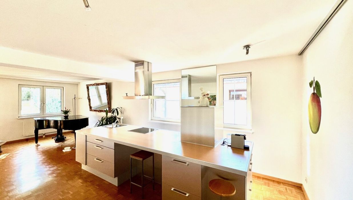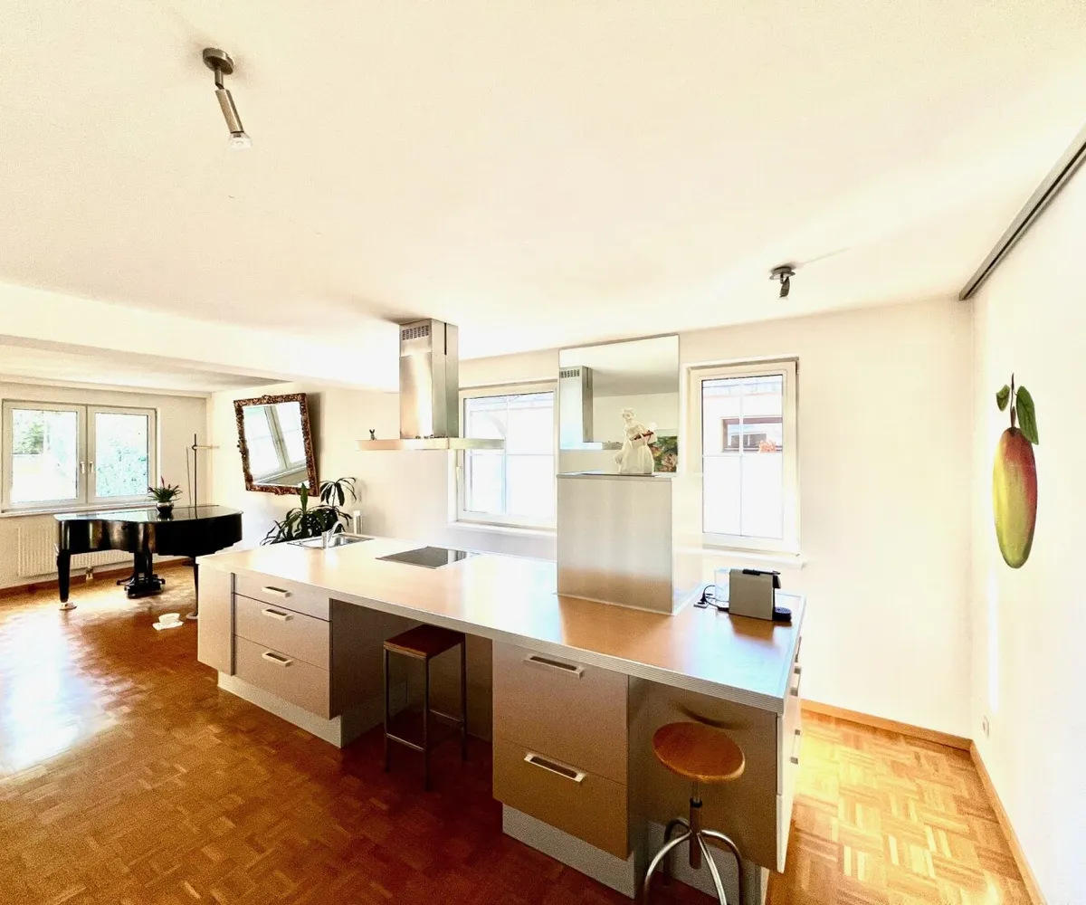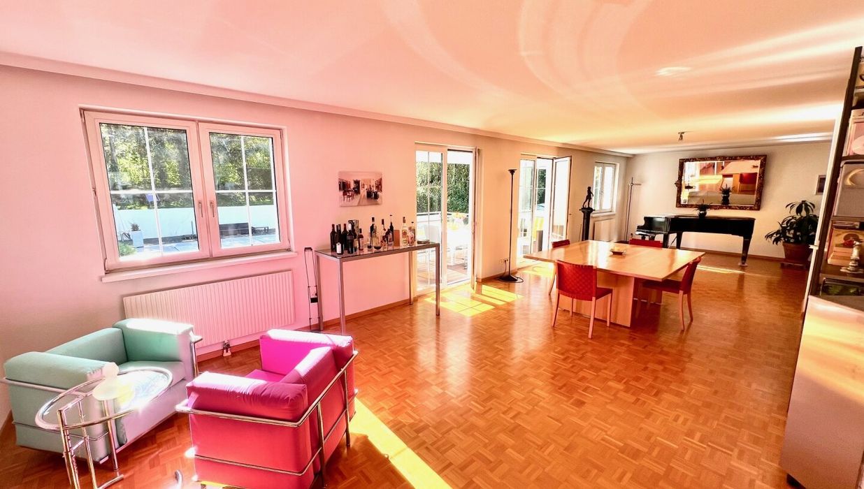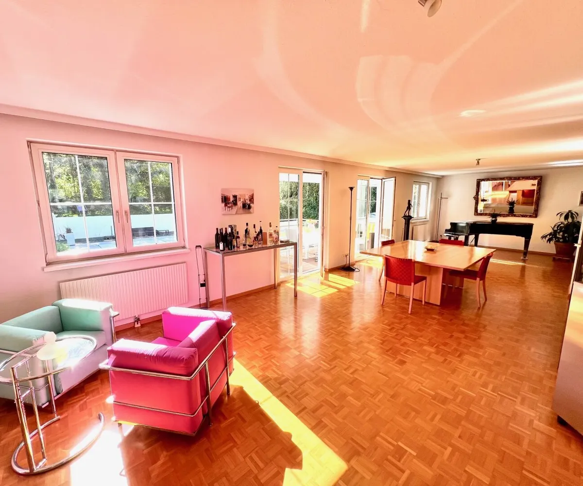Die ca. 165 m2 große 5 Zimmerwohnung liegt im 2. Liftstock. Der prachtvolle Wohn- & Essraum ist direkt in den schön gestalteten Garten gerichtet. Der überlegte Grundriss garantiert eine optimale Raumausnutzung und bietet Sonnenstrahlen bis zum Sonnenuntergang. Der in den Garten gerichtete Balkon lädt hervorragend zum Entspannen und Verweilen ein.
