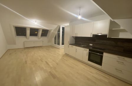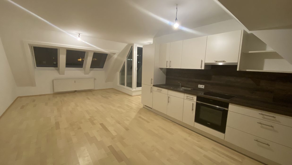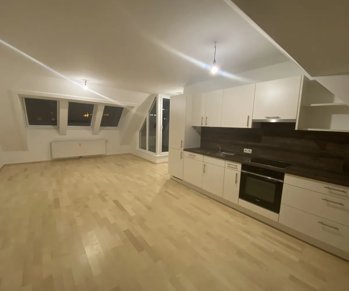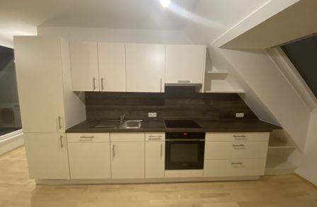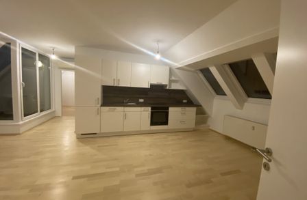 Die Wohnung selbst befindet sich im 1. Dachgeschoss und verfügt über eine geräumige Wohnküche mit vollausgestatteter Einbauküche, zwei Schlafzimmer, ein Badezimmer mit Dusche und Waschmaschinenanschluss, ein separates WC mit Handwaschbecken. Die gemütliche Loggia rundet das Angebot ideal ab!