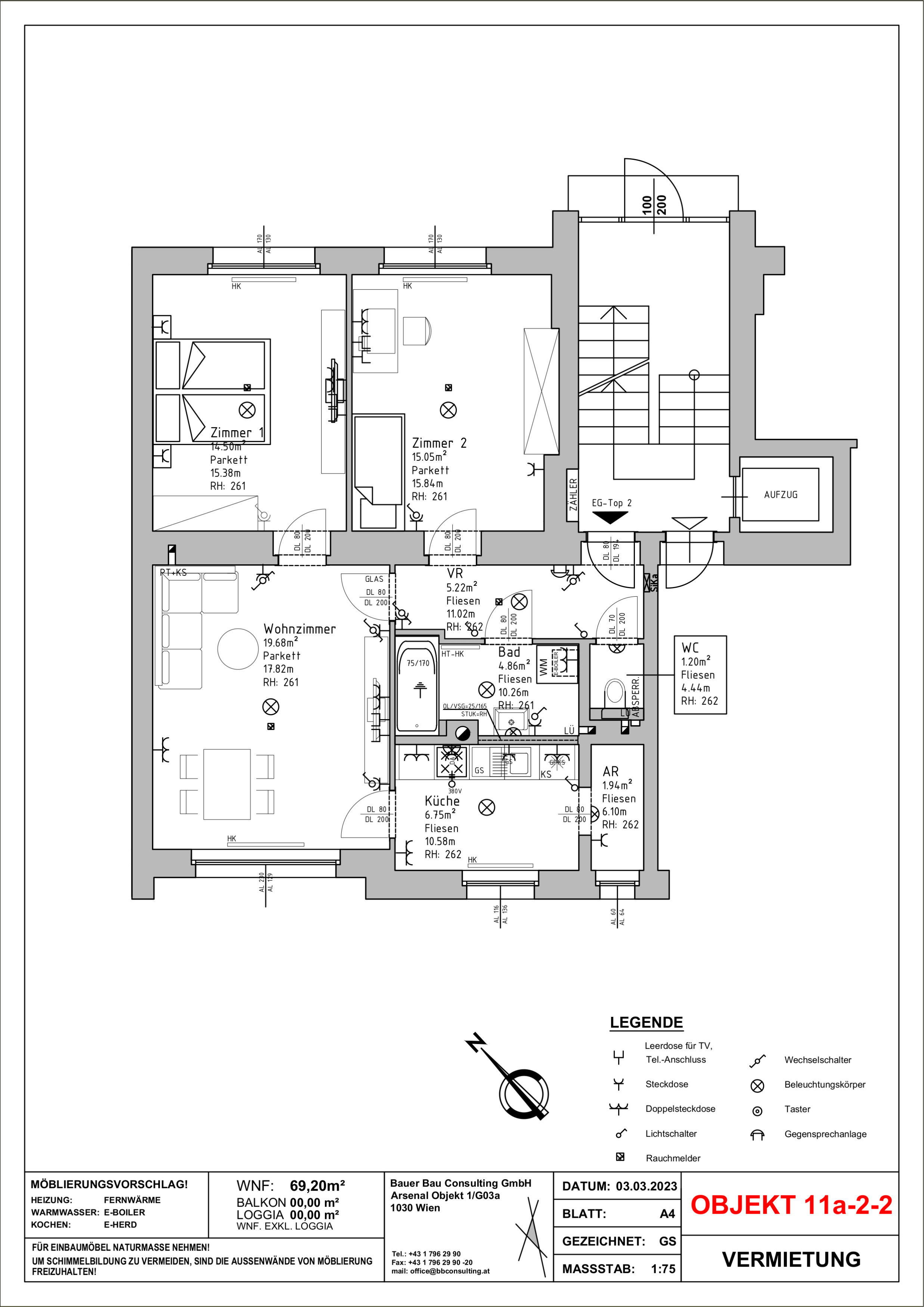 zzgl. Heizkosten € 21,75 netto + 4,35 Ust. = € 26,10 brutto