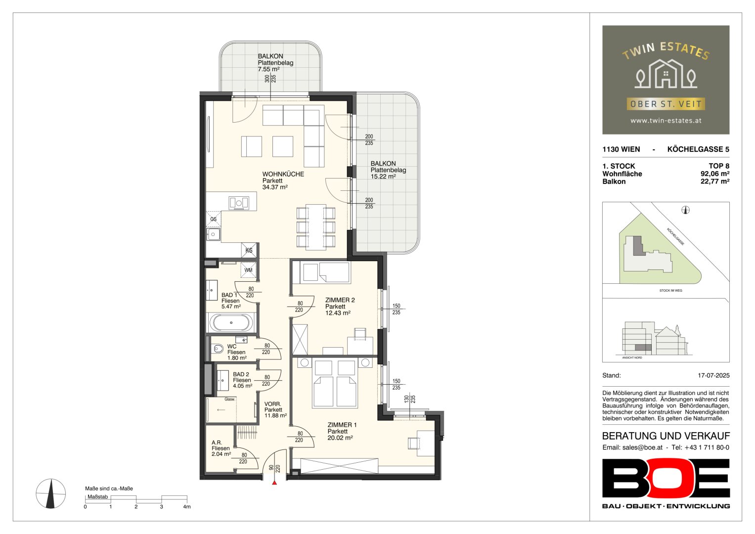 Individuell wohnen, individuell leben. TWIN ESTATES großzügige 3 Zimmerwohnung mit 2 Balkonen