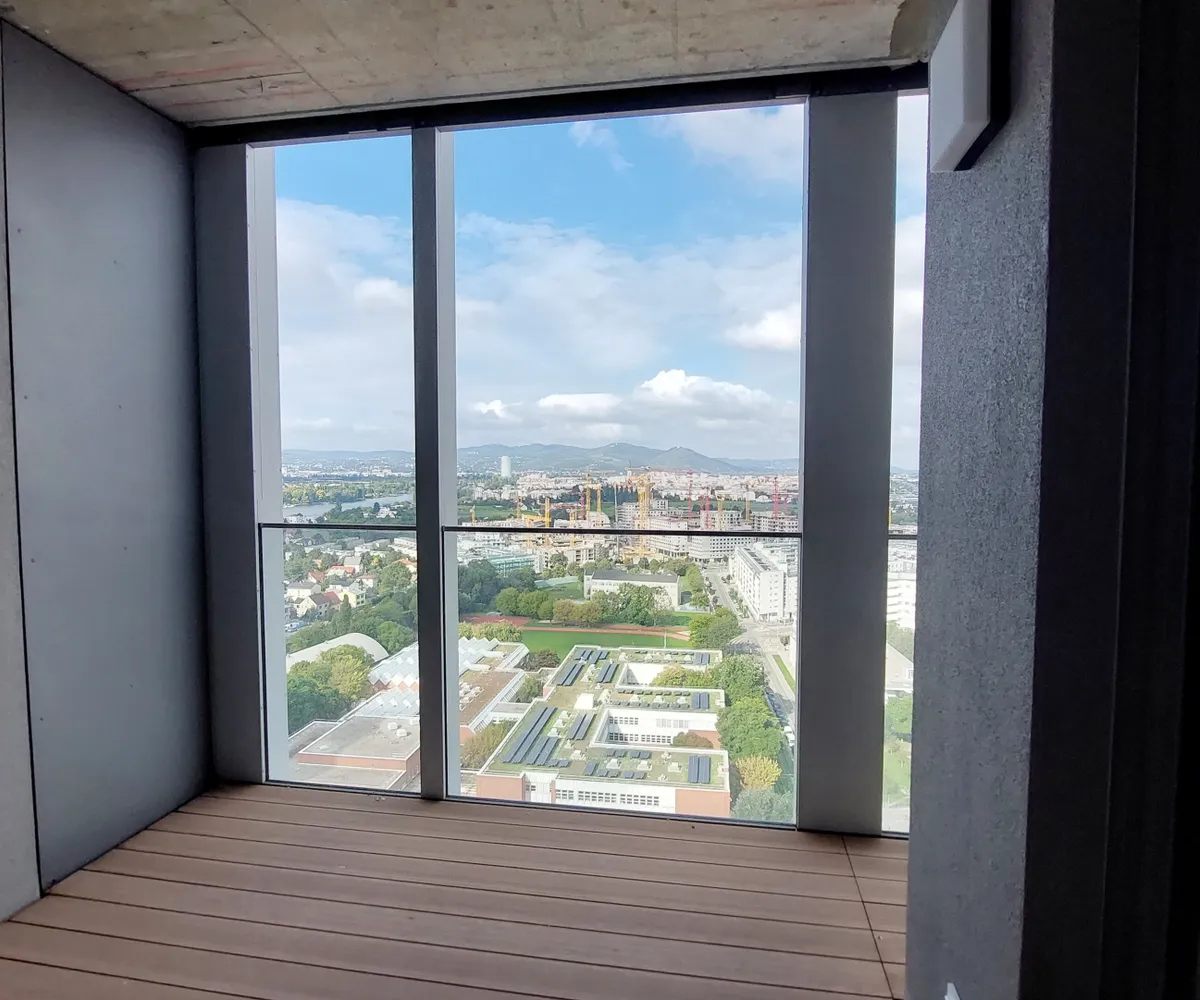 In einzigartiger Lage, direkt bei der U1-Station Kagran und vis-à-vis vom Donau Zentrum, entsteht ein exklusiver, ca. 155m hoher Wohnturm mit 45 Etagen. Die insgesamt 347 Mietwohnungen bieten einen vielfältigen Wohnungsmix: von smart geschnittenen 1,5-Zimmer-Apartments ab ca. 38 m² über komfortable 2-Zimmer-Wohnungen bis hin zu großzügigen 3- und 4-Zimmerwohnungen mit bis zu ca. 80 m².