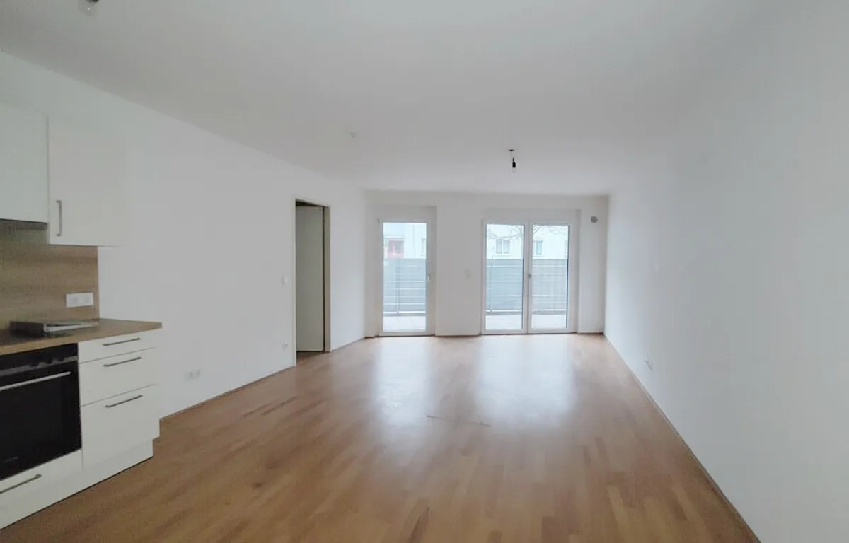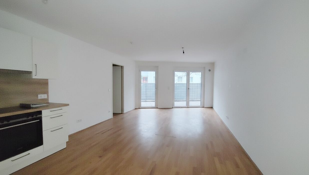 Diese optimal geschnittene 2-Zimmerwohnung liegt im Erdgeschoss und unterteilt sich in ein geräumiges Wohnzimmer mit Küchenzeile, ein separat begehbares Schlafzimmer, ein Badezimmer mit Wanne und Waschmaschinenanschluss, ein separates WC, sowie einen Vorraum. Zudem verfügt die Wohnung über eine großzügige Terrasse!