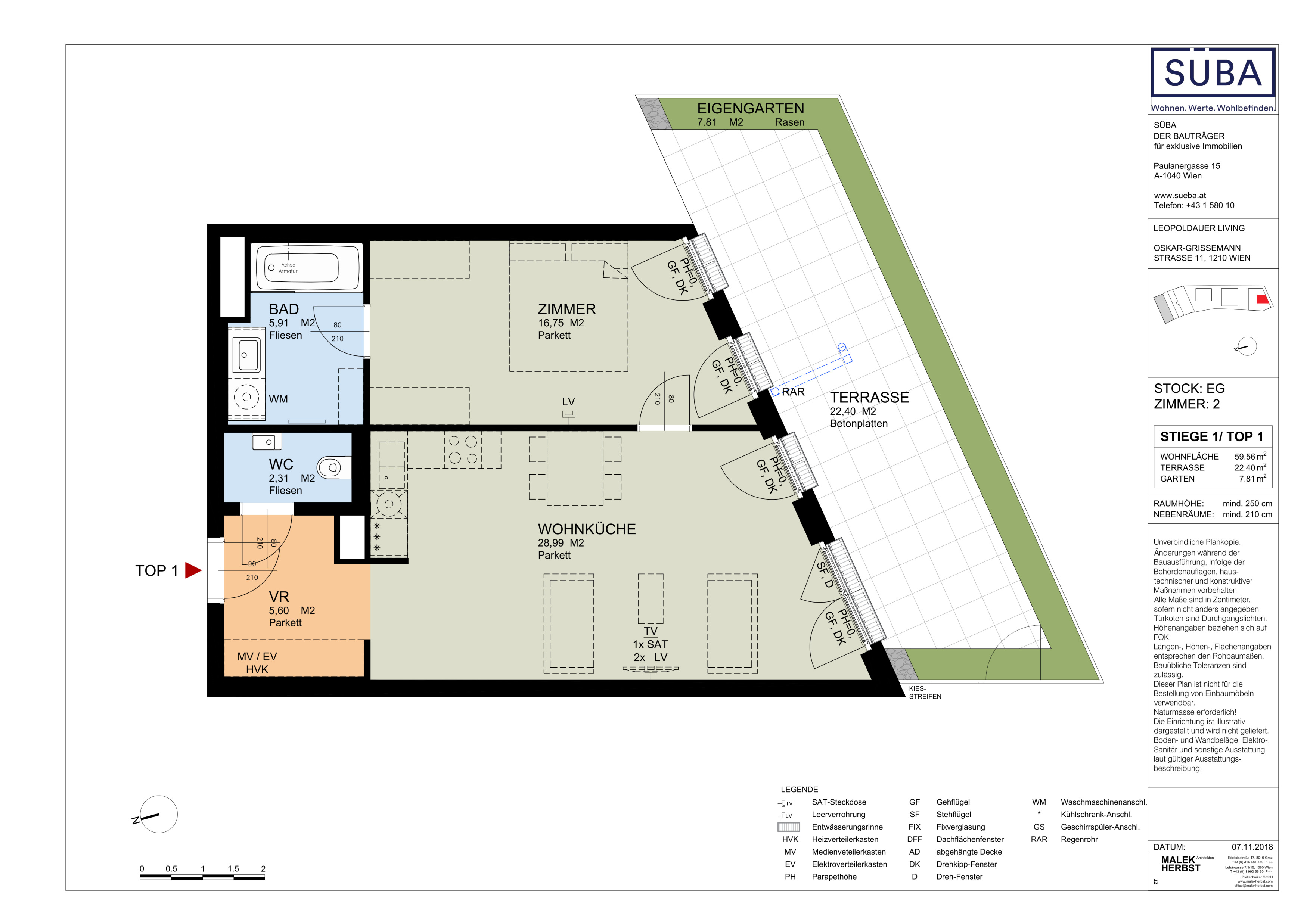 Diese optimal geschnittene 2-Zimmerwohnung liegt im Erdgeschoss und unterteilt sich in ein geräumiges Wohnzimmer mit Küchenzeile, ein separat begehbares Schlafzimmer, ein Badezimmer mit Wanne und Waschmaschinenanschluss, ein separates WC, sowie einen Vorraum. Zudem verfügt die Wohnung über südseitigen Eigengarten mit großer Terrasse!