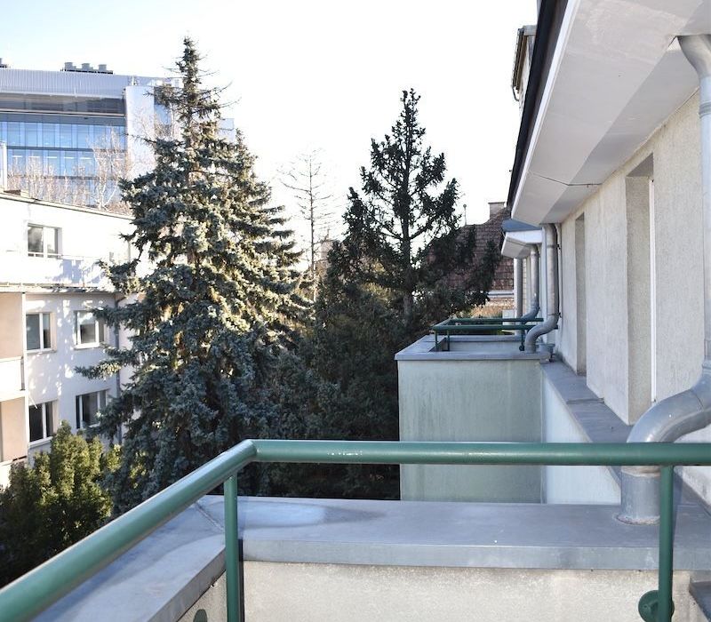 Der besondere Charme der Wohnung besteht darin, dass beide Zimmer Zugang zu einem Balkon mit Blick ins Grüne haben.