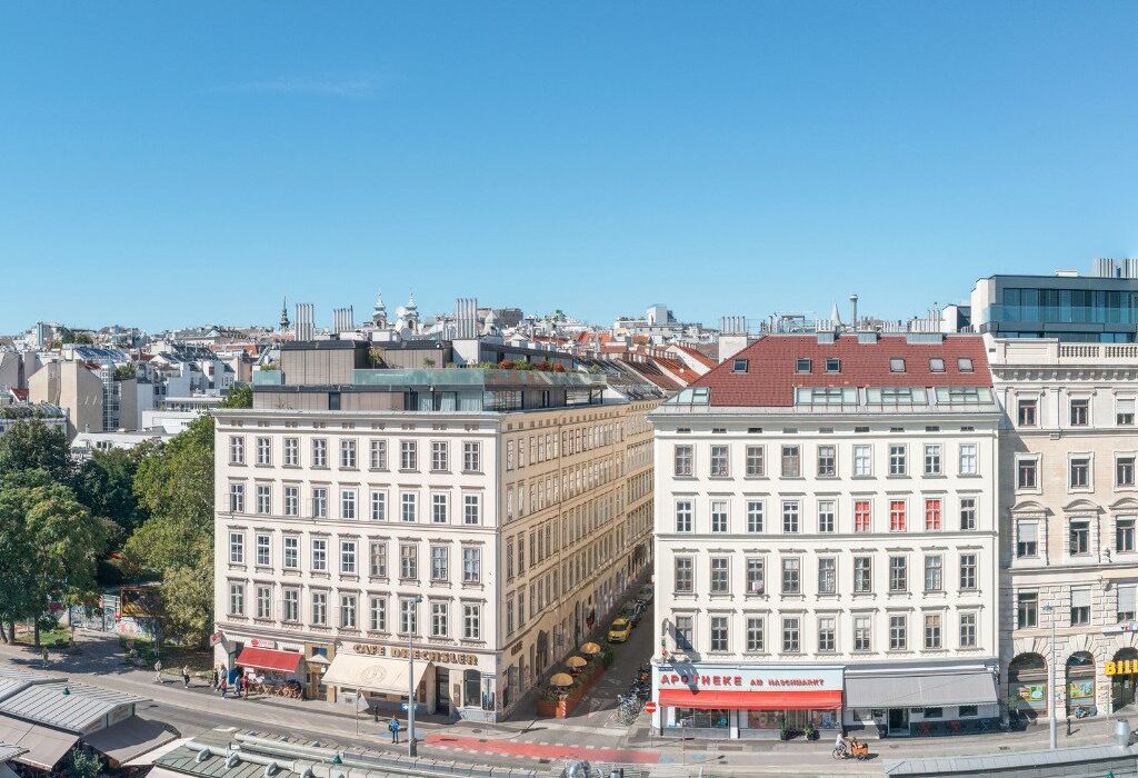 Das Haus liegt direkt am Naschmarkt, Wiens kulinarischem Herzstück und Hotspot für internationale Delikatessen.
