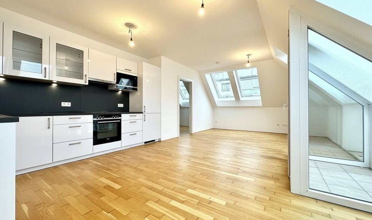 Dank der idealen Infrastruktur und der optimalen öffentlichen Verkehrsanbindung präsentiert sich diese exklusive 3-Zimmer-Dachgeschosswohnung als perfektes urbanes Zuhause.