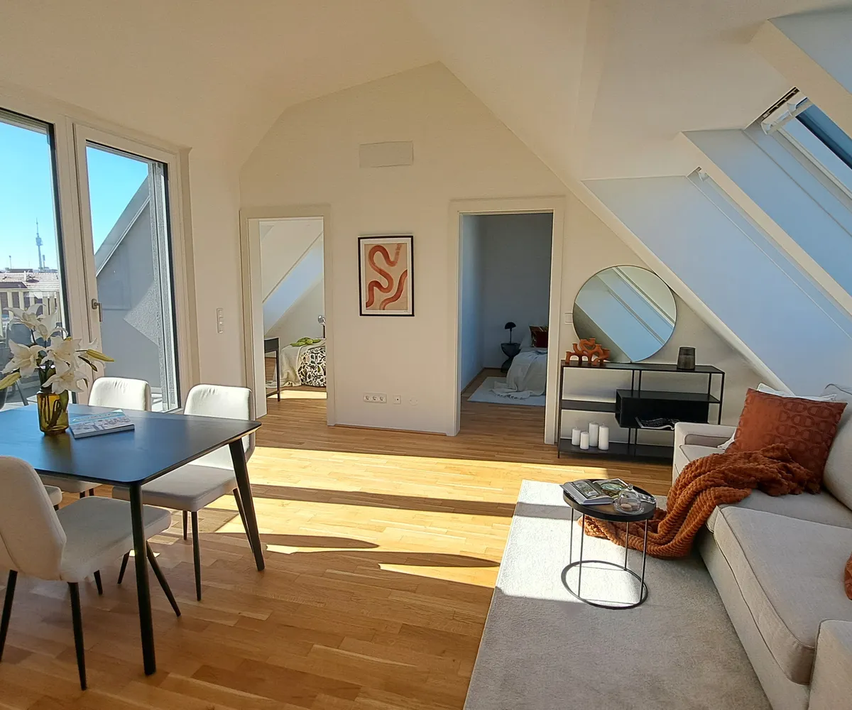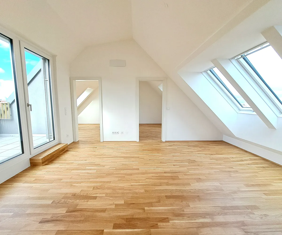 Top 50 mit ca. 74m² und 3 Zimmer befindet sich im 2. Dachgeschoss und ist sowohl straßenseitig als auch hofseitig orientiert. Es handelt sich um eine schlüsselfertige Wohnung inkl. Küchenanschlüsse.